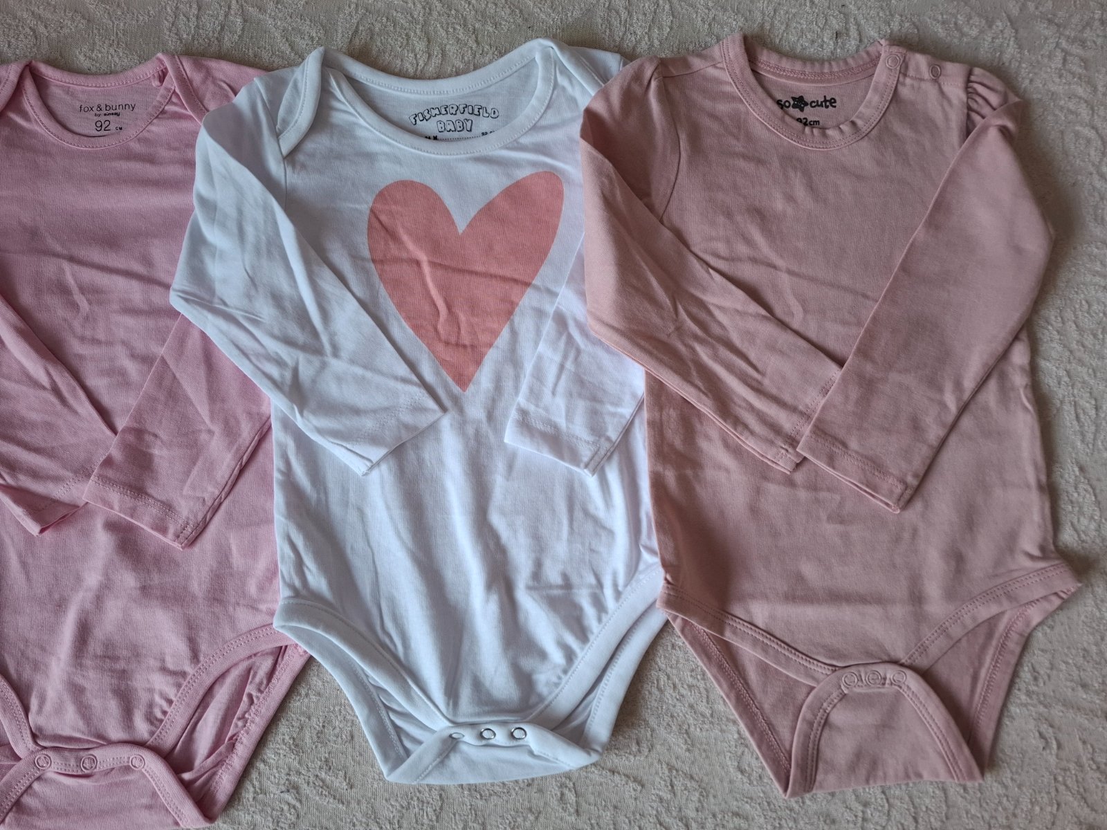 Oblečené bolo iba bledoružové body zľava. Zvyšné 3 nové, nenosené. 2x body zo Sinsay, biele z Gatu a tmavoružové napravo z Pepca.