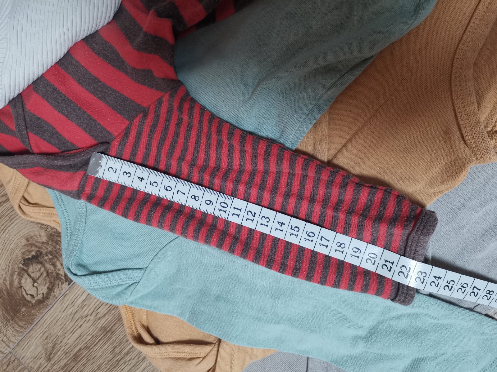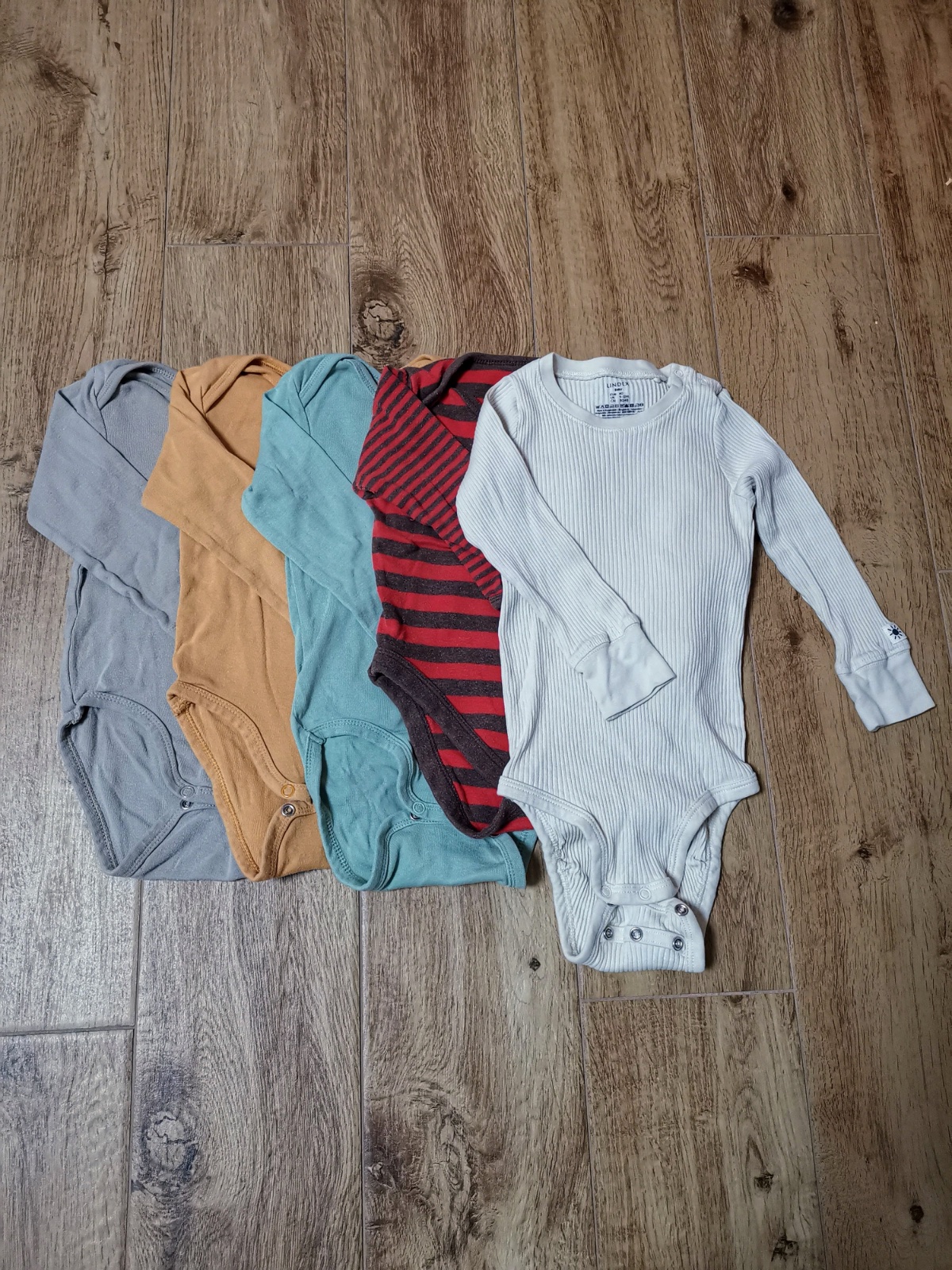 5ks body - 1x lindex v top stave, 3x h&m a 1x iné majú žmolky. Všetky sú v. 80, ale pásikavé je najkratšie a lindex najdlhšie.