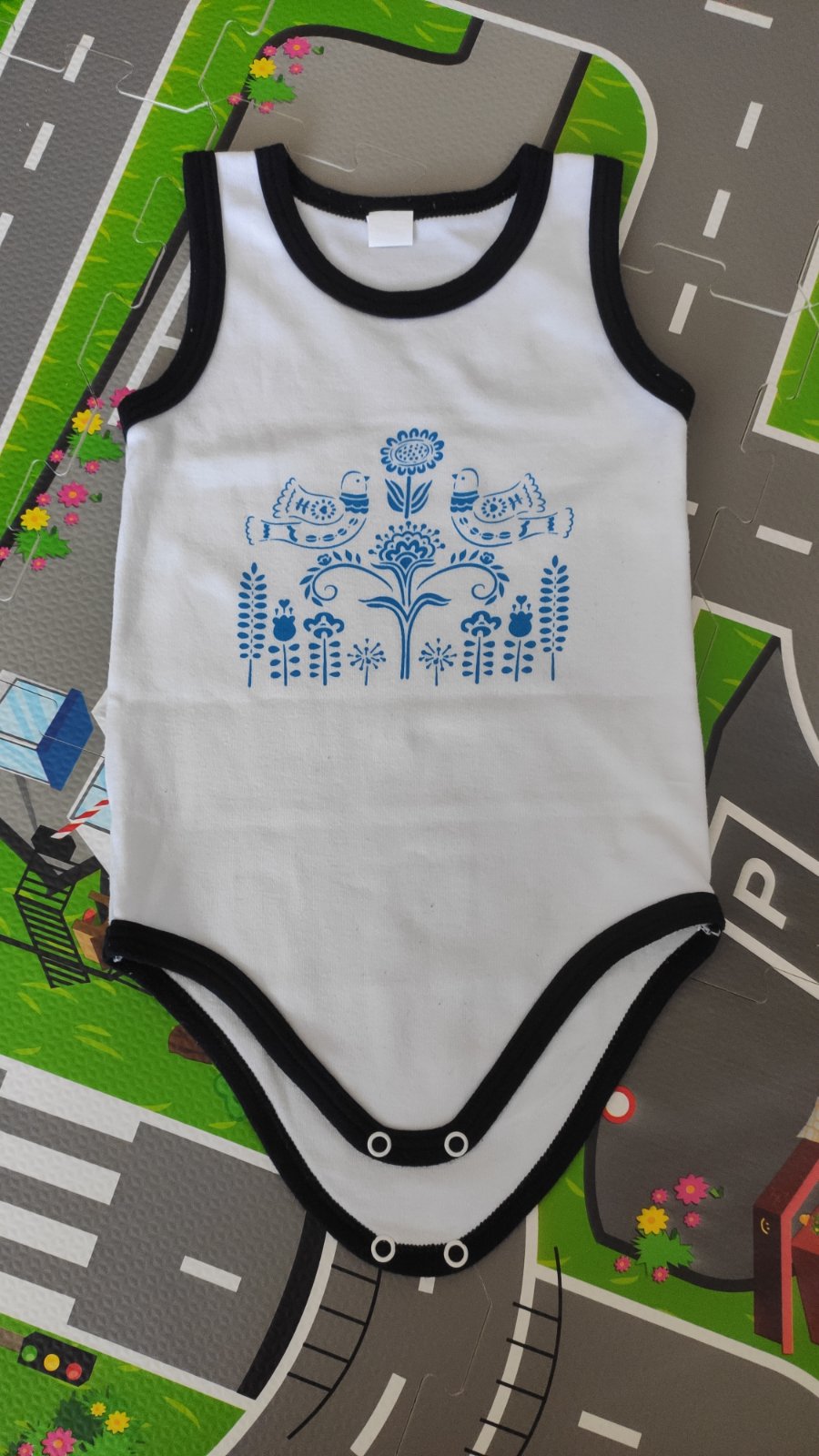 Minimálne nosené body zo 100%tnej bio bavlny.Na prednej časti má dve farebné škvrny čiastočne “ladiace” s farebným nápisom:-)