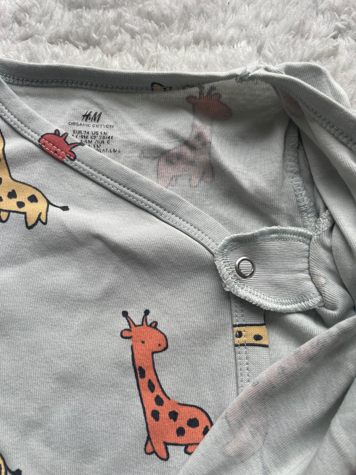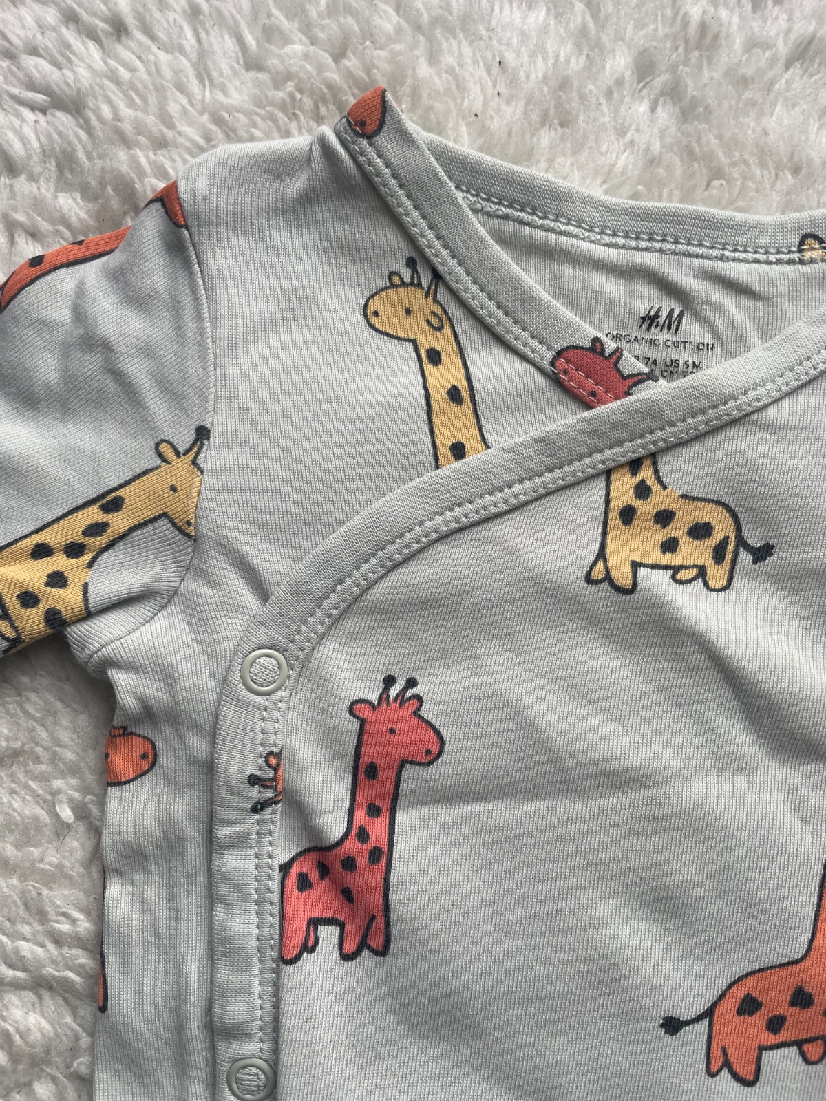 Bavlnene zavinovacie body so zirafkami zn.H&M, bez dier a flakov, len nazehlovacia velkost je uz mierne vyprata