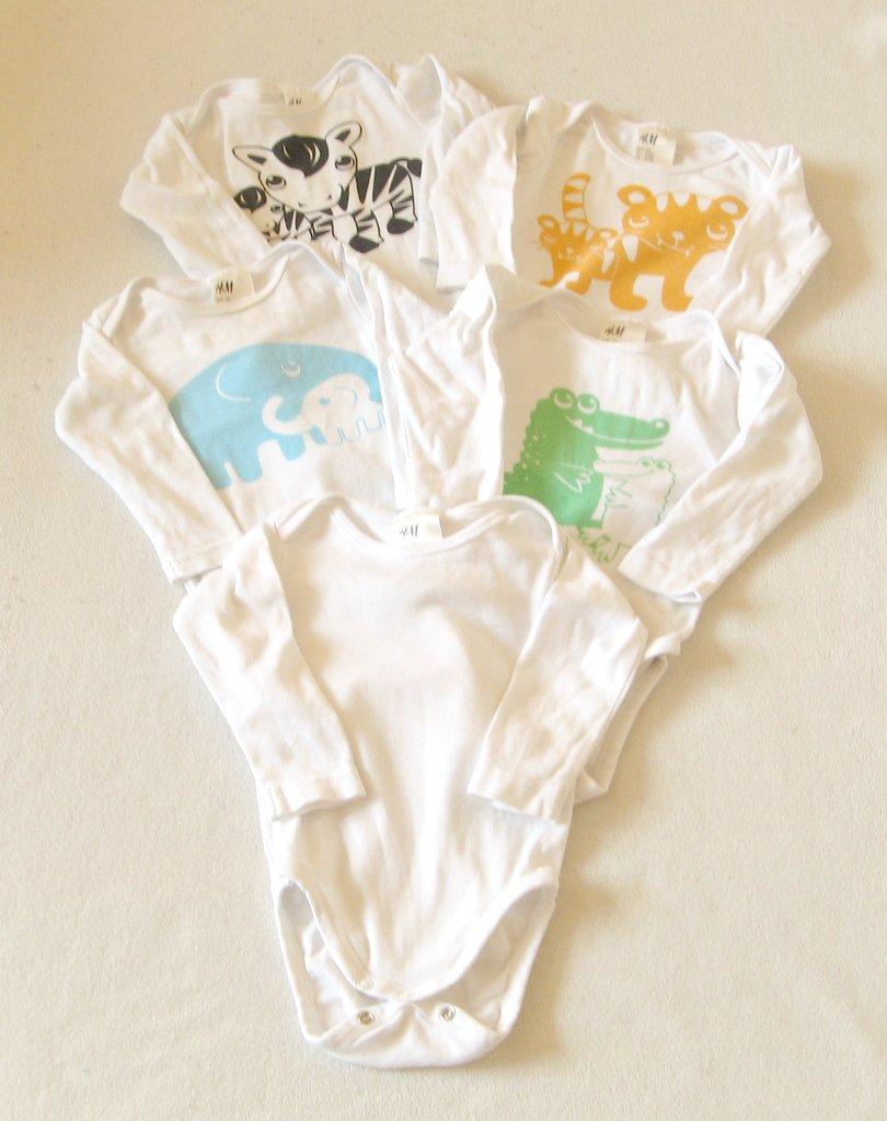 Predám 5 ks body s dlhým rukávom v. 68 (4 - 6 mes.), veľmi zachovalé, bez fľakov, 4x so zvieratkom, 1x čisto biele