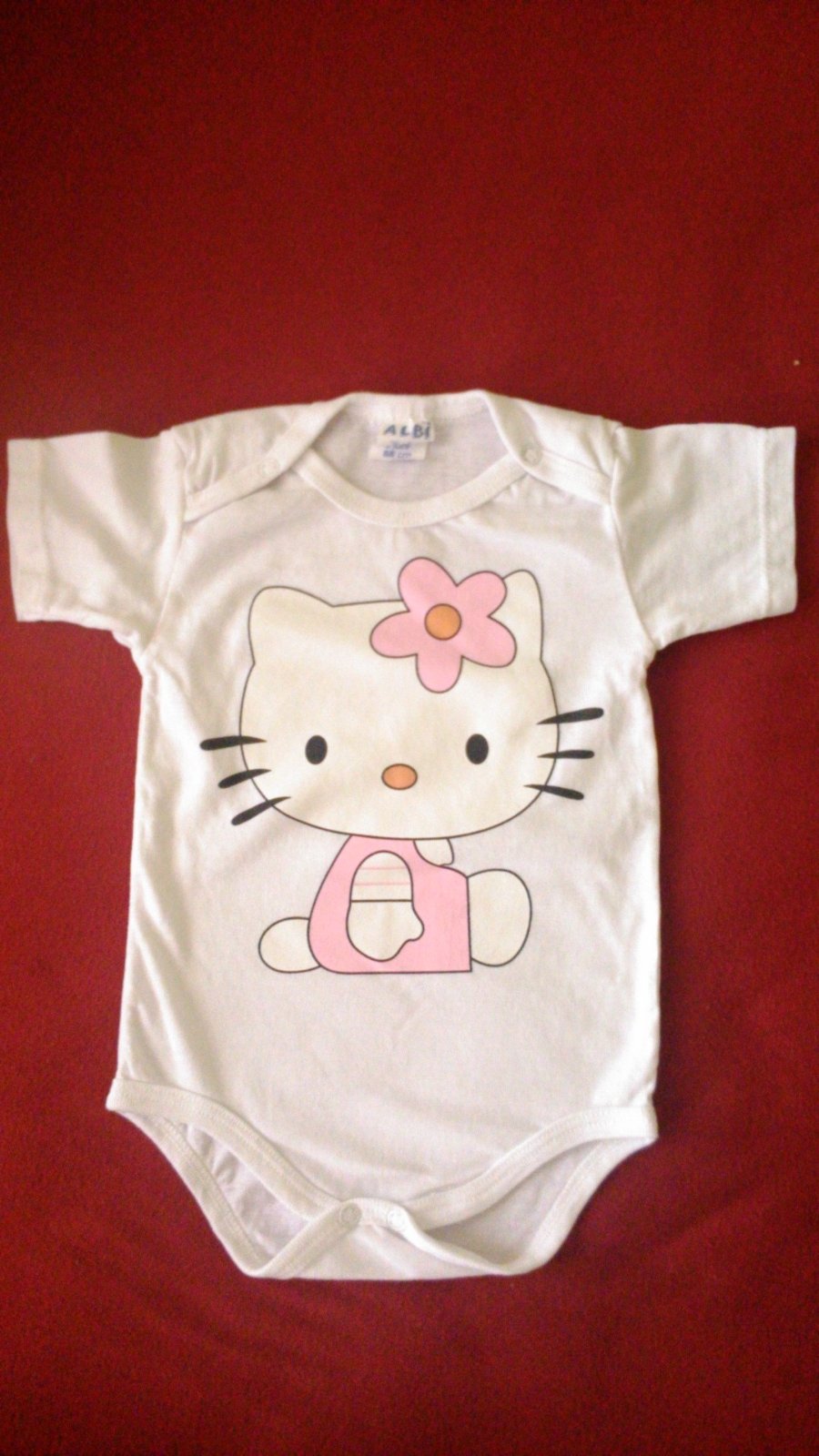 Krasne biele bodiky Hellou Kitty bez poškodenia, mali sme ich iba 2x oblečene.