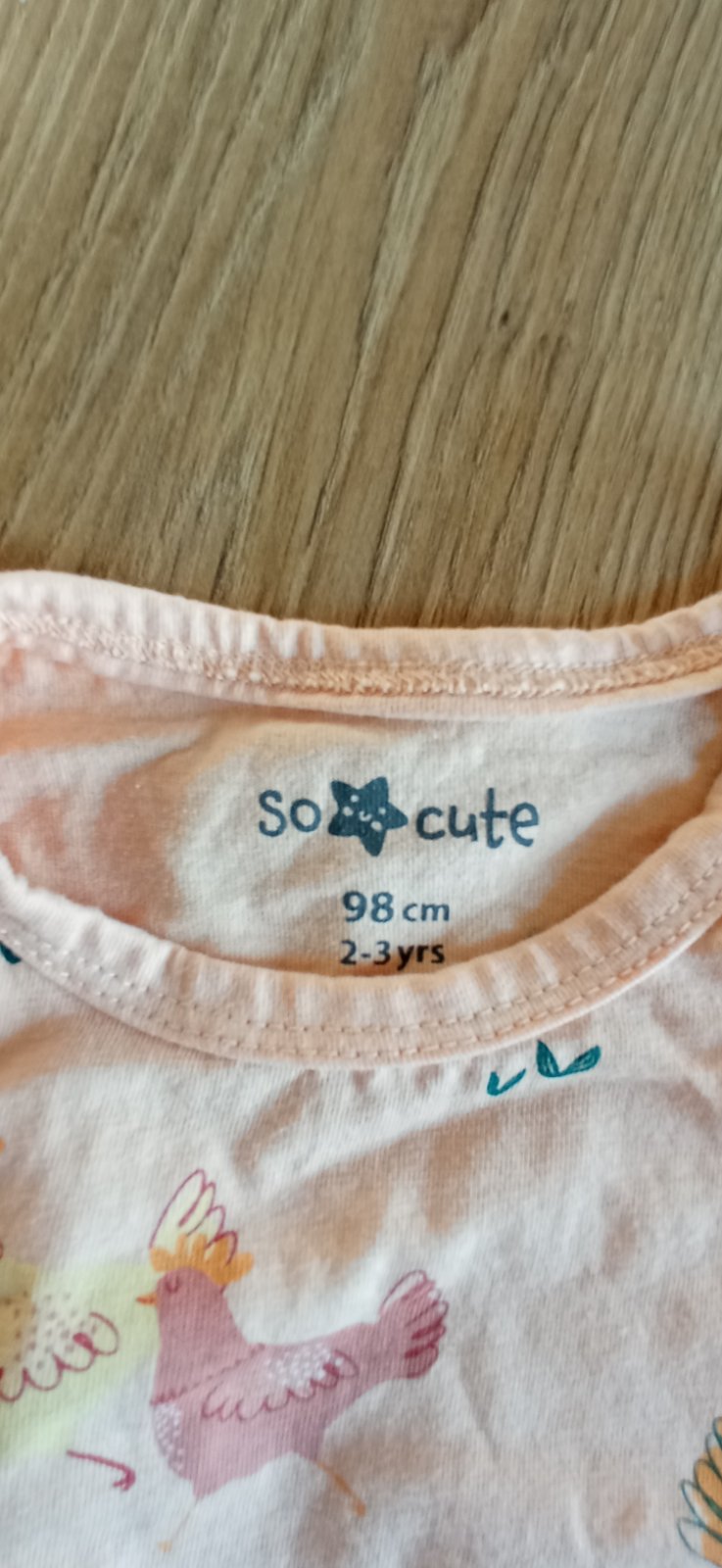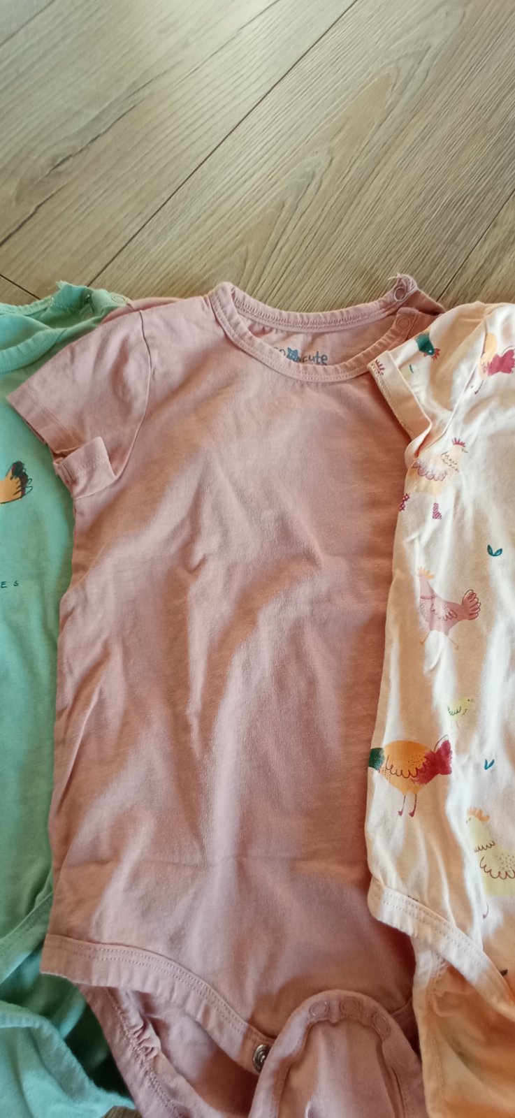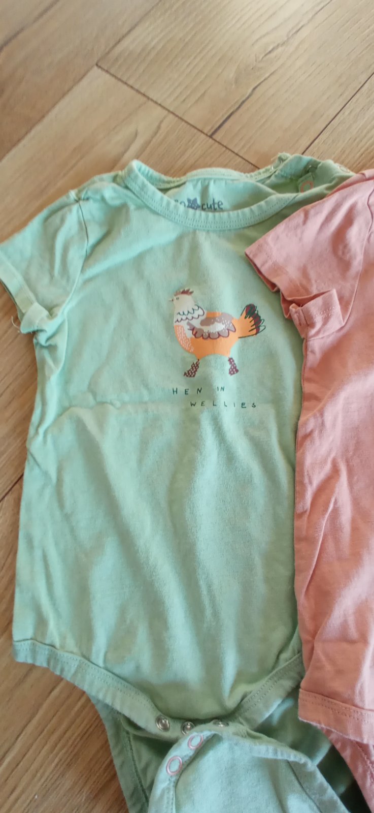 Nosene, ale stale v dobrom stave. Vsetko je velkost 98 az na jedno tricko, to je 92 (nevsimla som si pri kupe). Na foto je vidno velkostny rozdiel. Jedny leginu maju o kusok dlhsiu nohu ako pri tej...