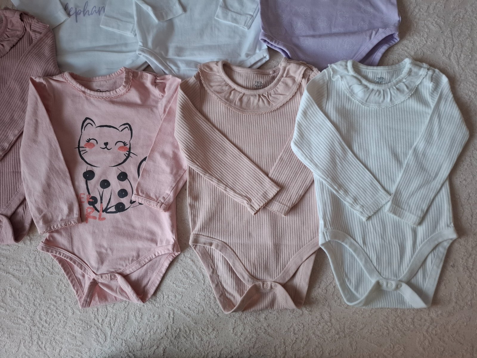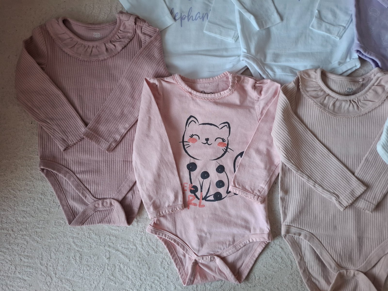 Predam rozme dievcenske body vel.92, nositelne aj do vel.98. Ruzove na 1.foto - 7€ spolu (jedno ma fliacik, ale je tam take iste aj bez fliacika) Biele (maju maly fliacik) - 2€ So slonikom (maju ...