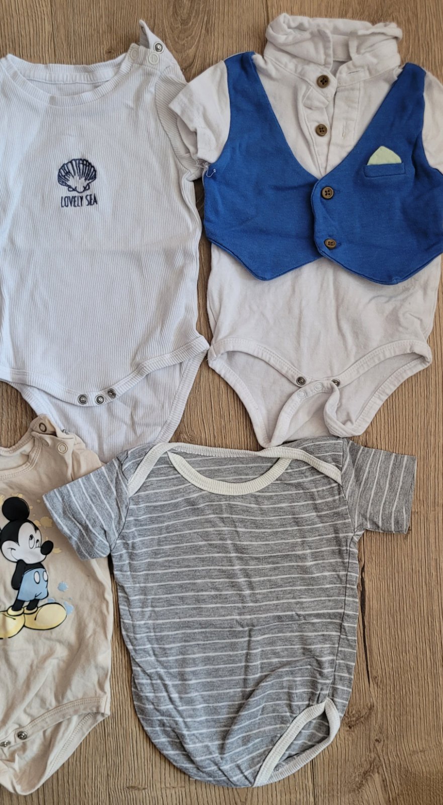 Body s krátkym rukávom 5ks, pepco 68, bez poškodenia. Cena spolu.