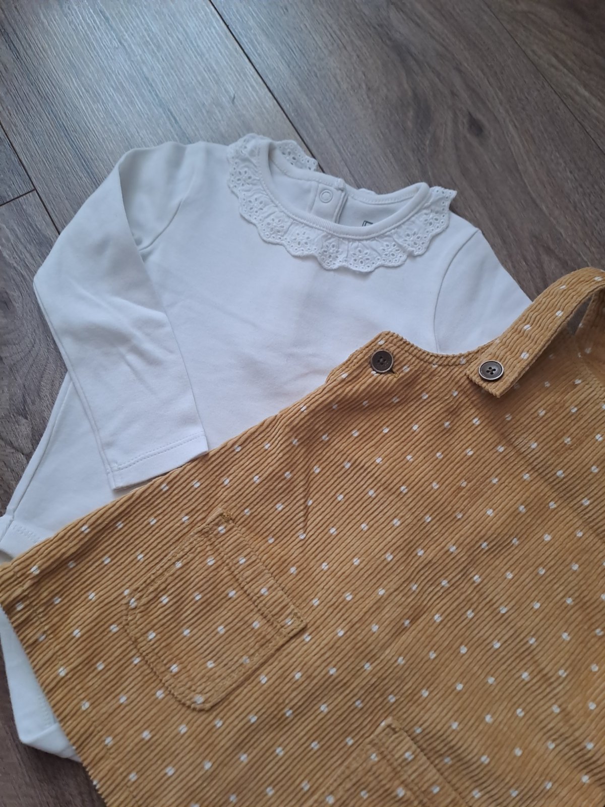 Top stav, bez známok nosenia. Krásna horčicova farba, krásne kvietky. Veľkosť 86/92 na dva roky. Cena za kus 2 eura. Už iba jedno.