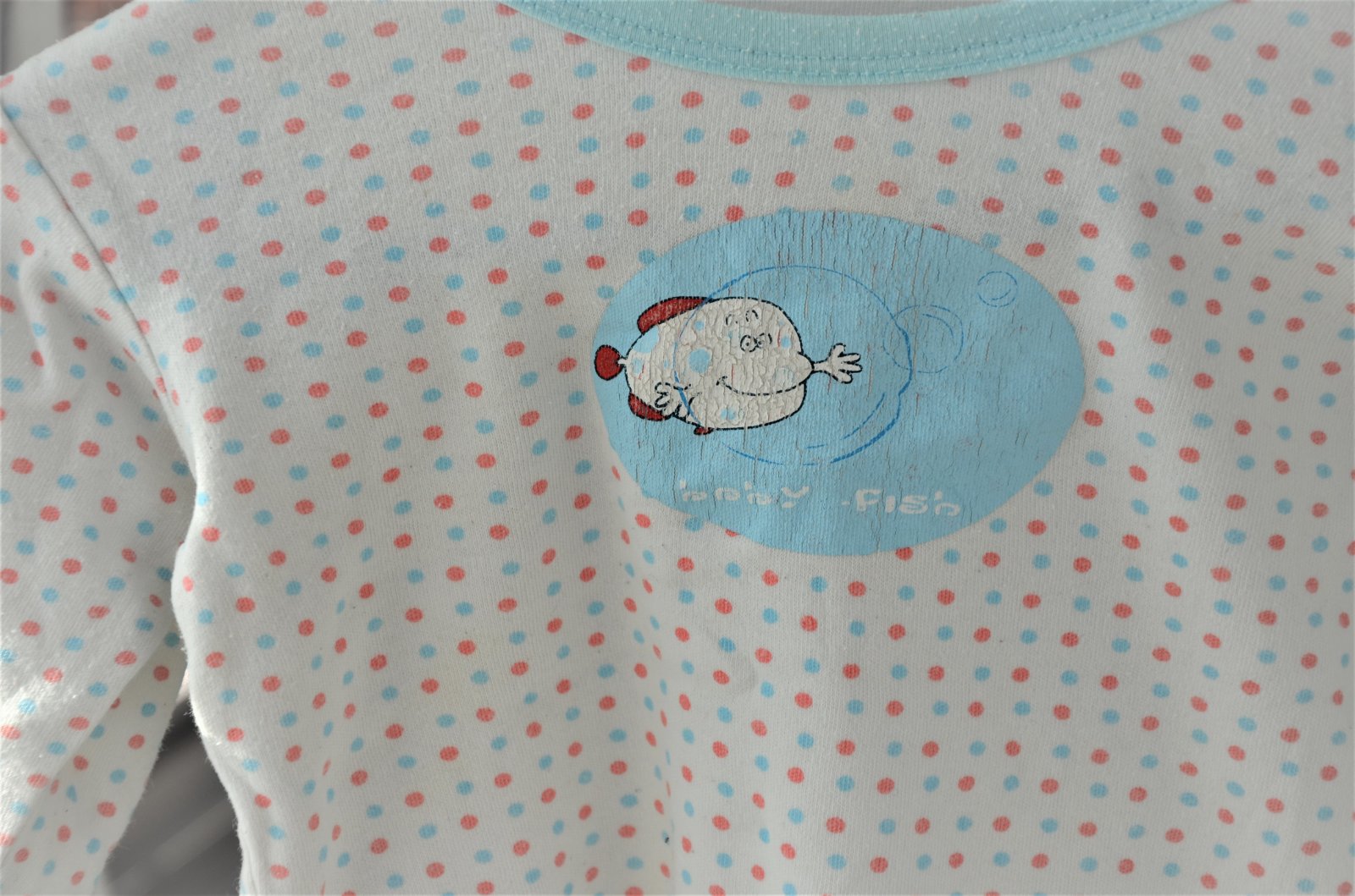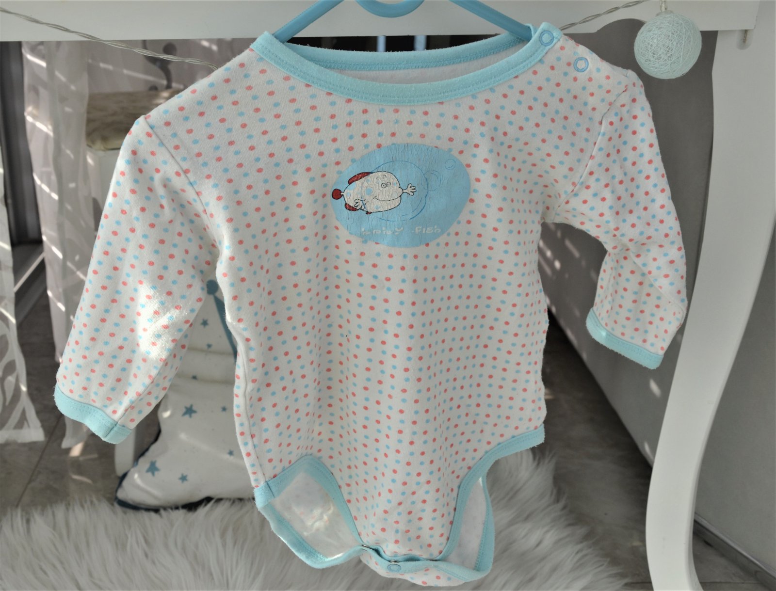 nevymieňam!!nosené,miestami malé žmolky,bavlnené,dĺžka body 40cm,šírka 2 x 28cm,rukáv meraný od ramena 21cm..potlač rybyčky je trochu popraskaná..kuk aj na iné moje inzeráty