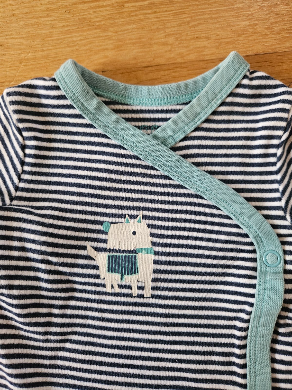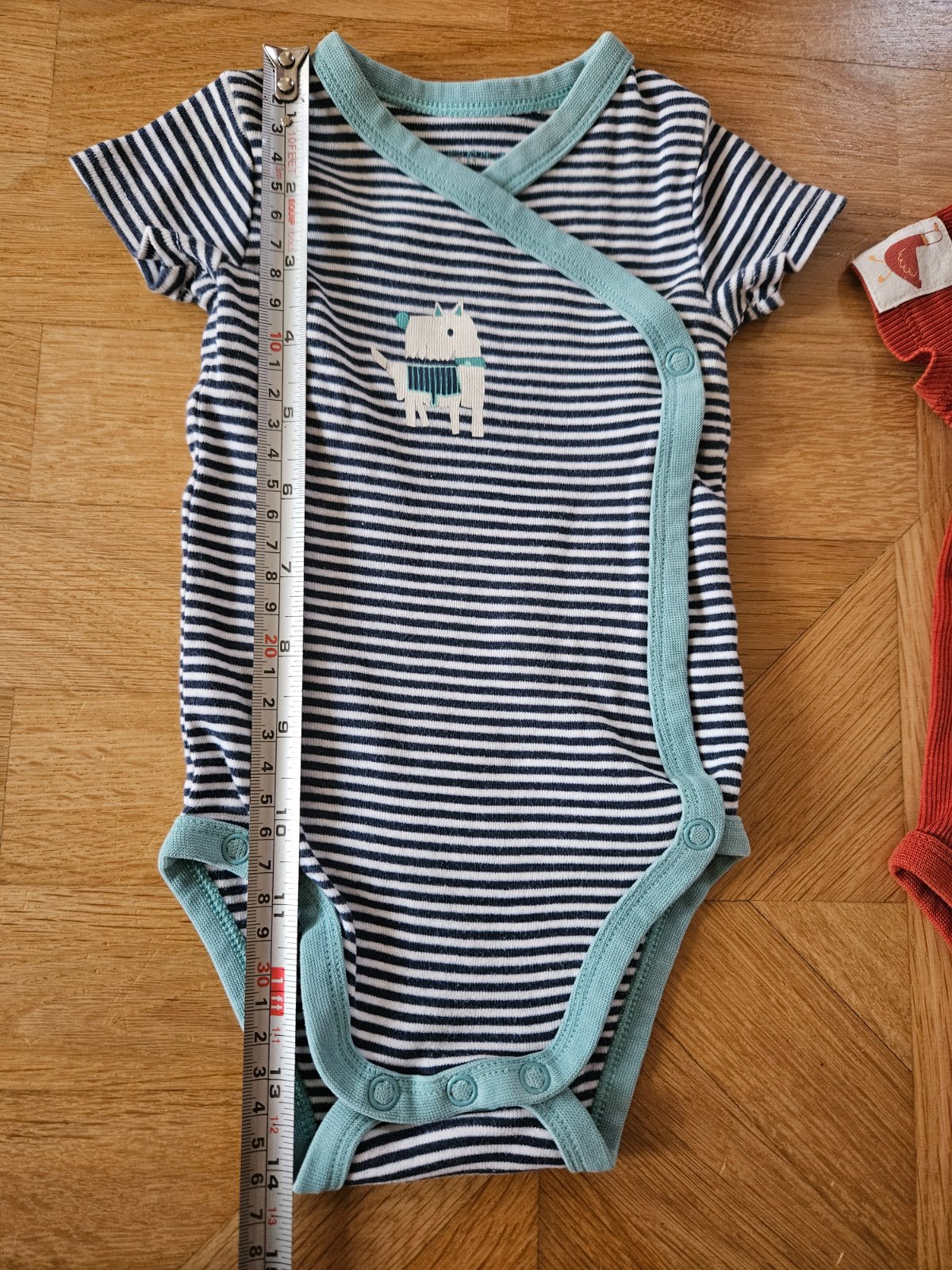 Skôr pre štíhlejšie bábo, na pásikovom píšu veľ. 50/56 ale veľkostne sedí na 68, a na tom vľavo píšu zas 74. Cena spolu.