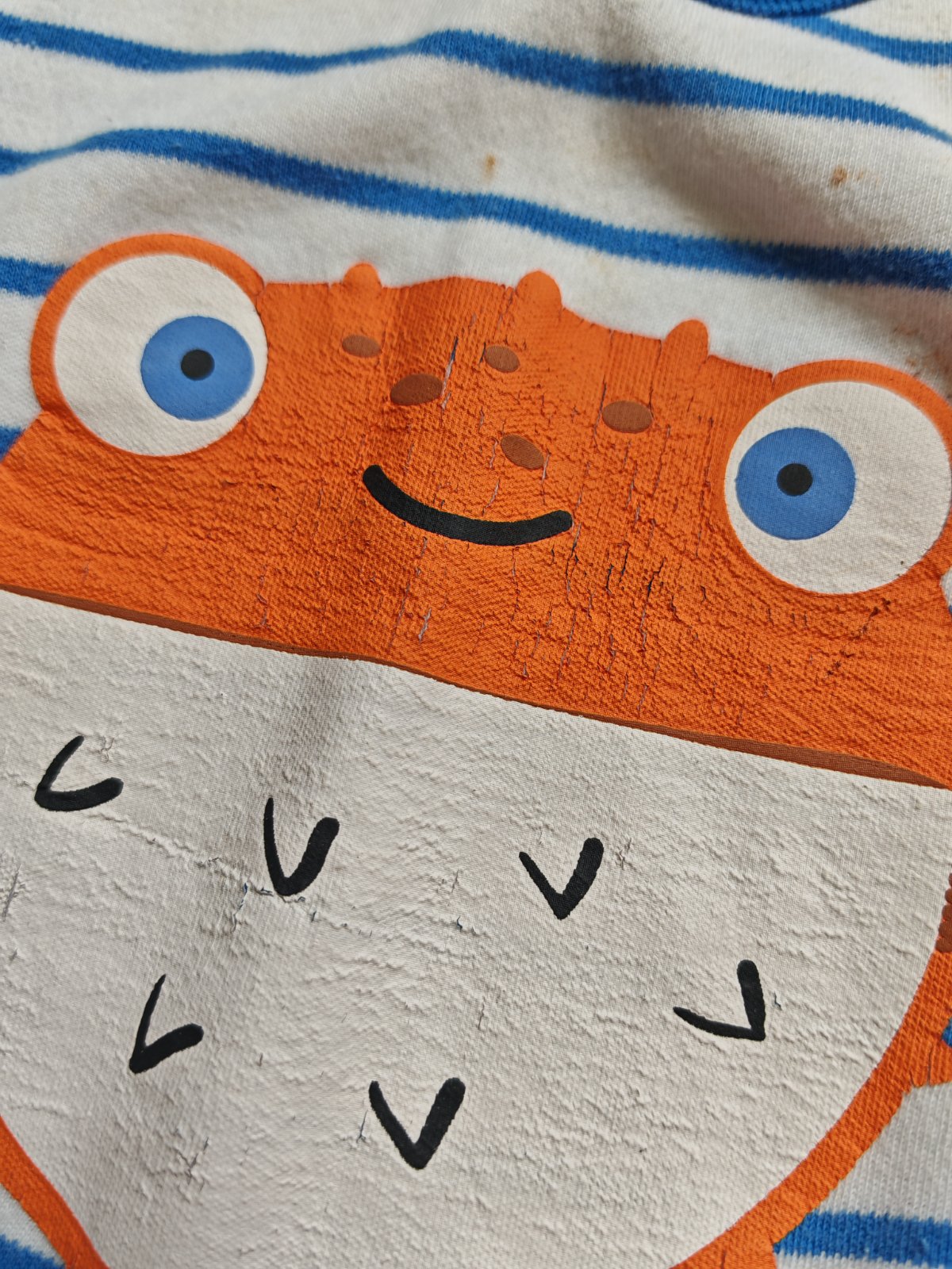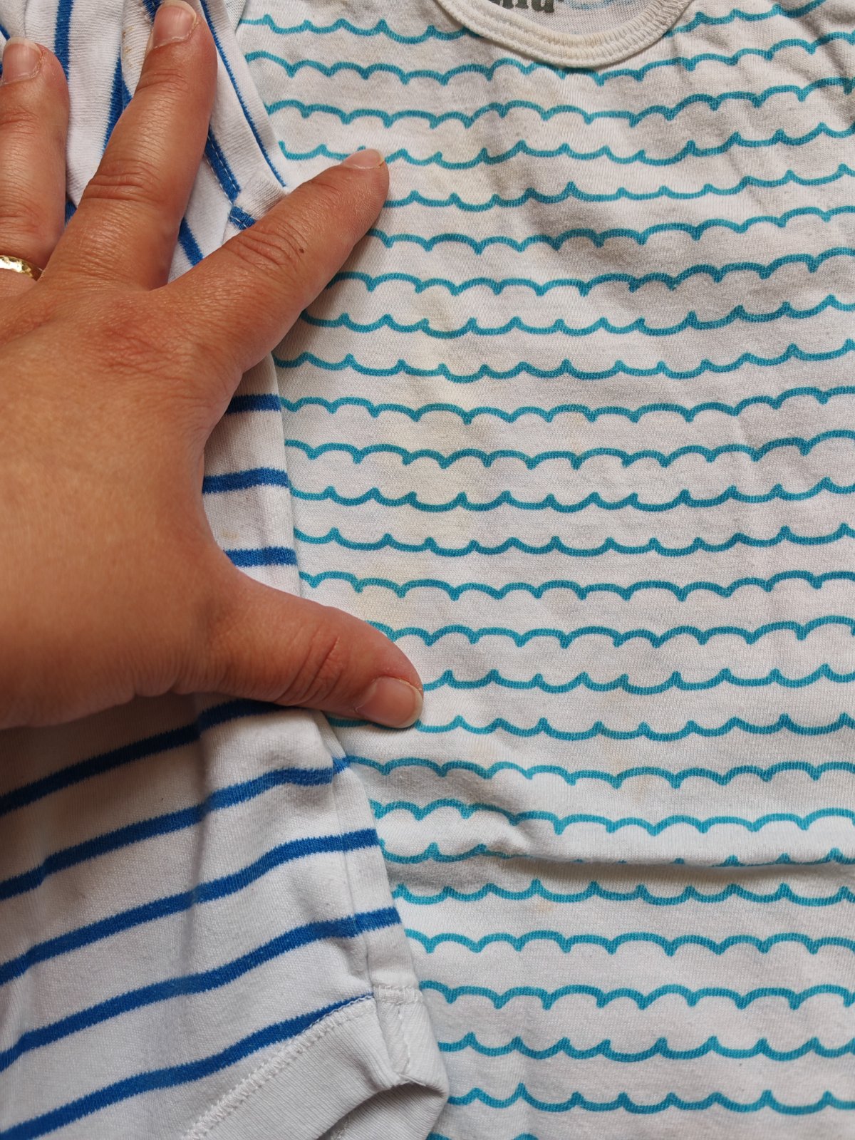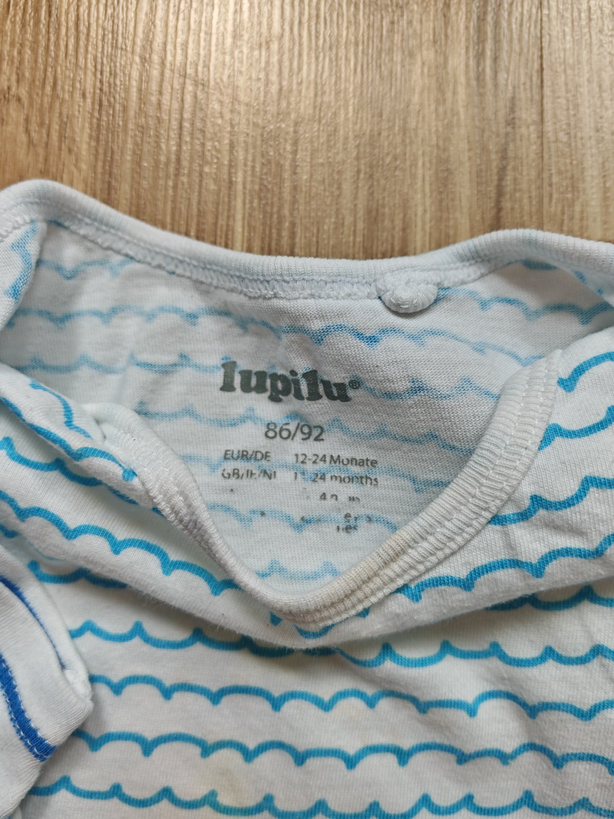 Nosené, majú fľaky. Vhodné na donosenie keď už chce dieťa samo papať 🙂 2ks F&F 12-18m a vlnky sú lupilu 86/92