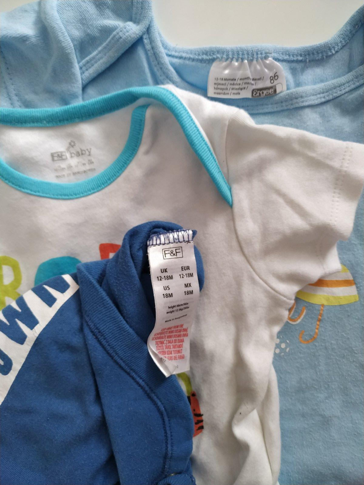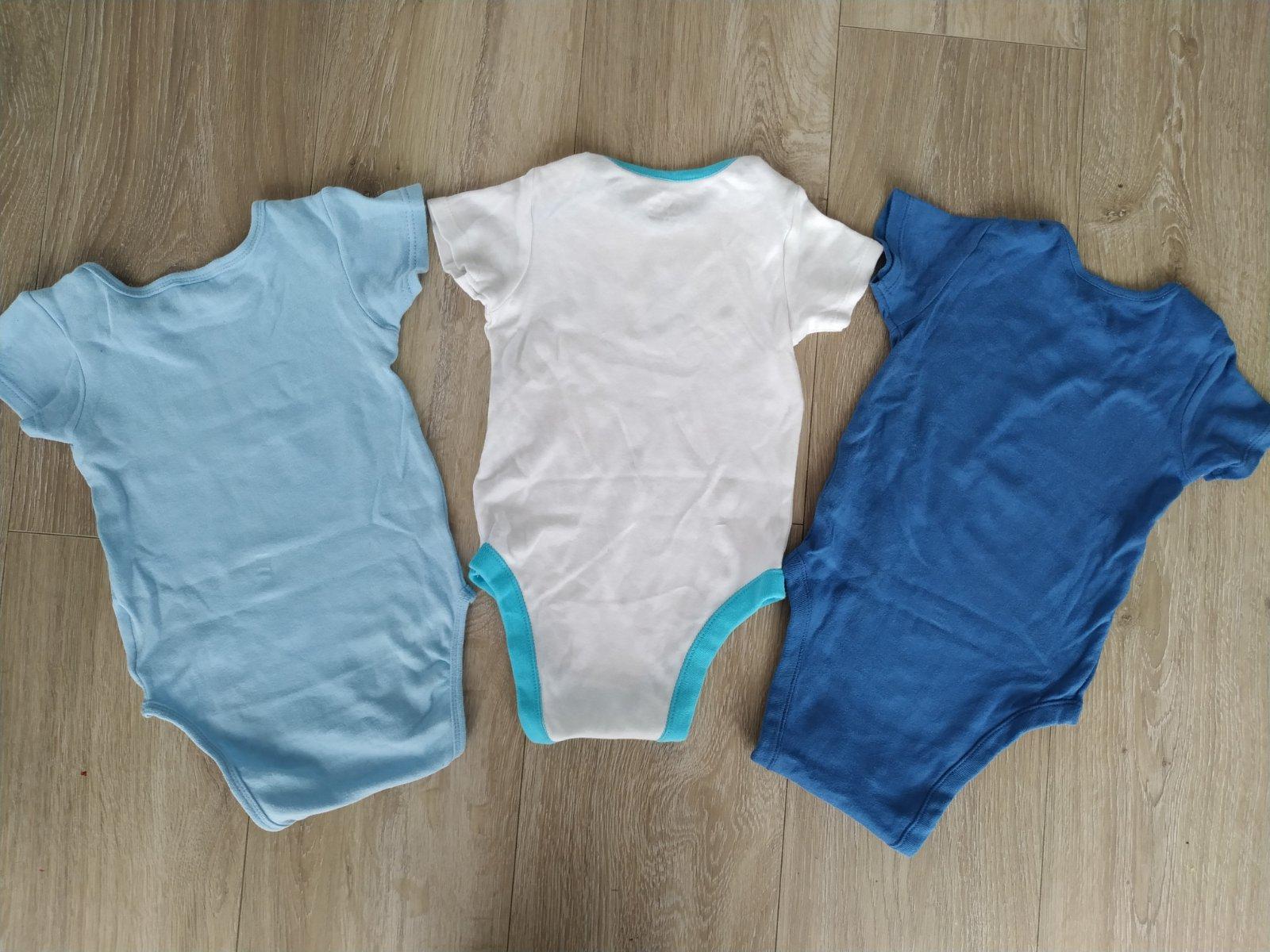 Ponúkam na predaj chlapčenské nosené body, no ešte určite využiteľné. Biele a tmavomodré F&F, bledomodré Ergee (KIK), všetky veľkosť 86. Biele a bledomodré majú fliačik, viď foto. Samostatne každé 1,50 €/ks. Cena spolu za všetky 3,50 € + pošt.