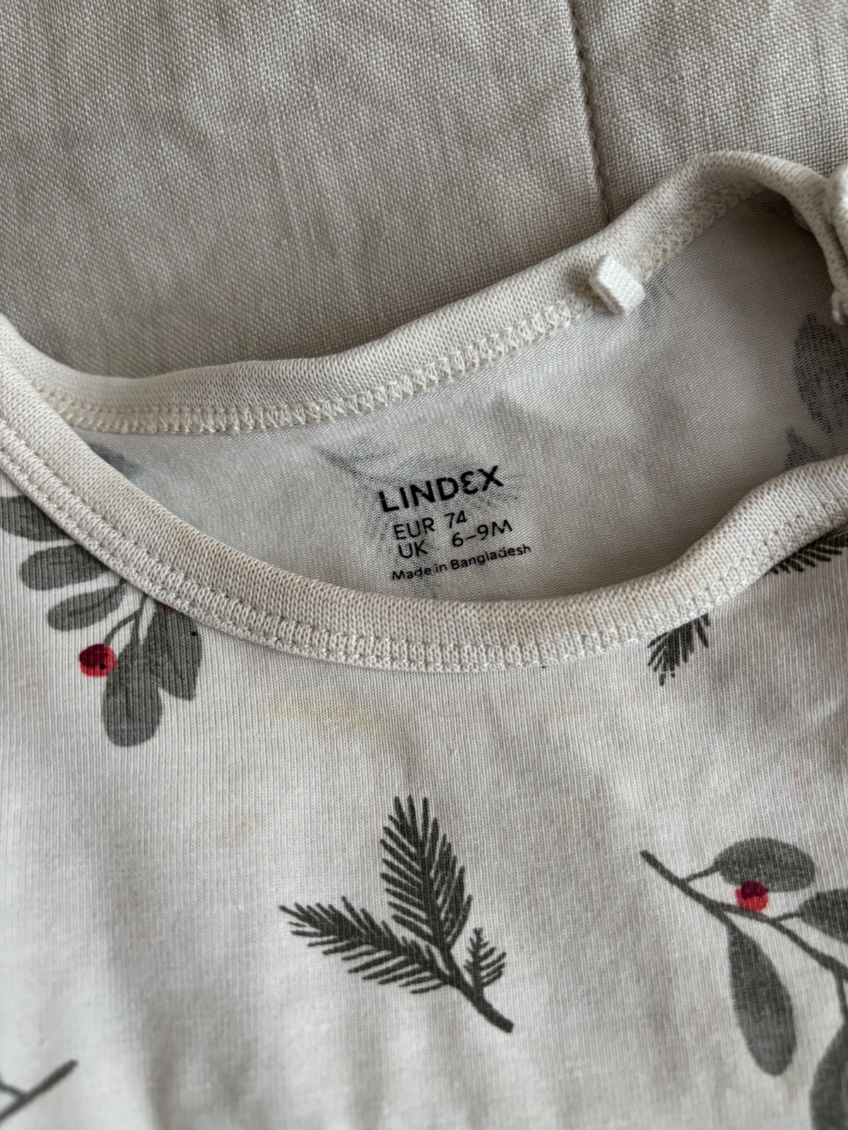 Rastuce Lindex body a vrubkovane leginy. Na leginach fliak, body ma fliaky pri krku a na rukavoch. Velkost 74