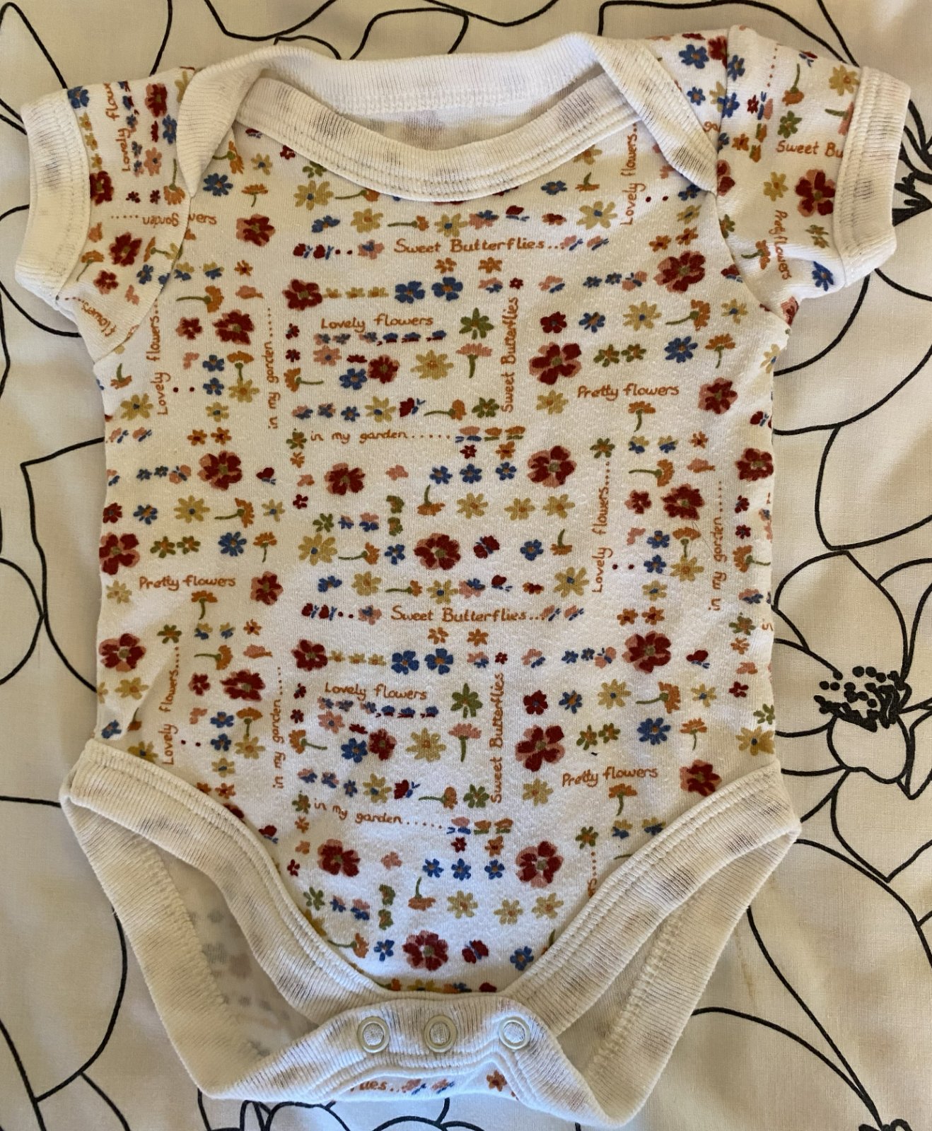 Bavlnené body s potlačou kvietkov Adams v. 62, málo nosené na striedačku s inými, bez fľakov a dier.