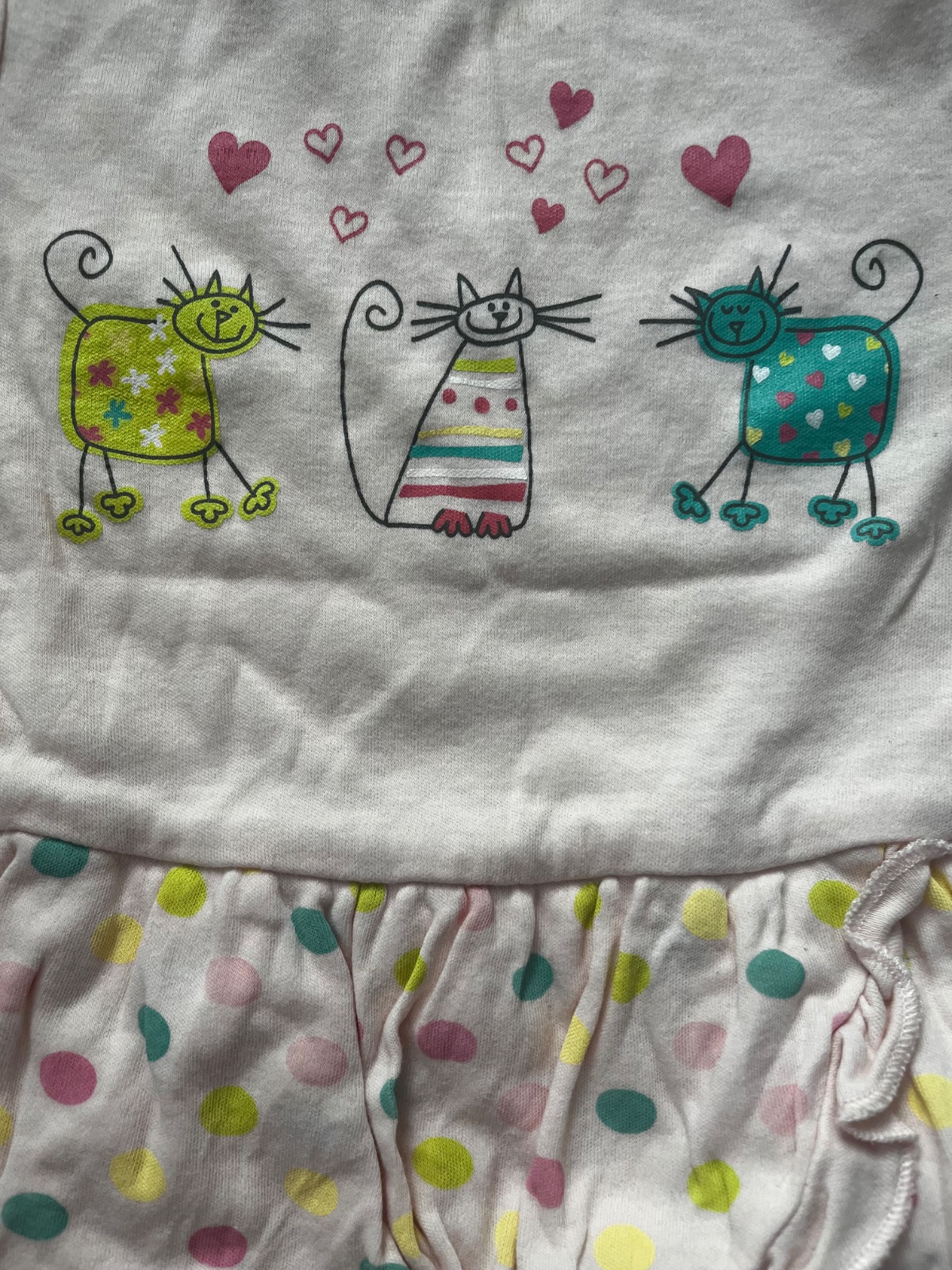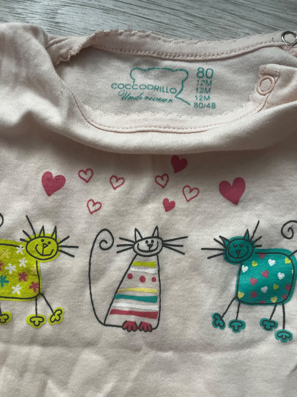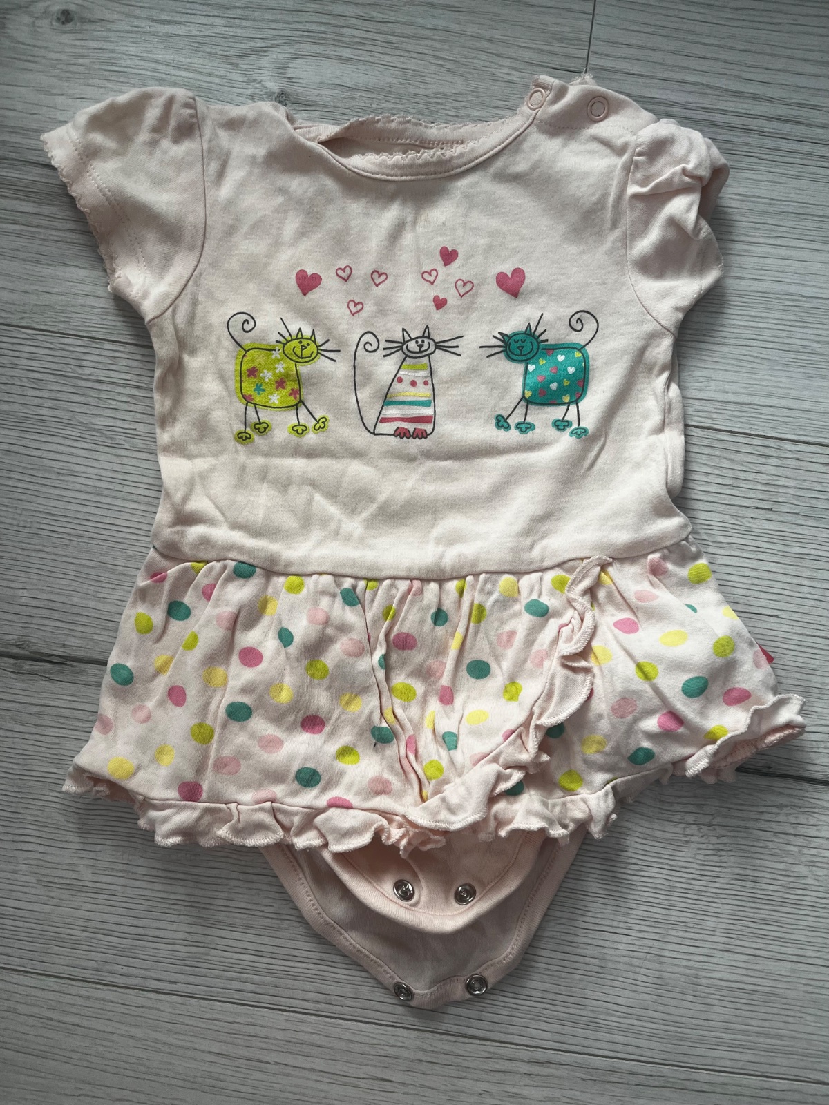 Predám bledoruzove kratkorukavove body s obrázkami mačičiek a s bodkovanou suknickou. Značka: Coccodrillo, veľkosť: 80 (9-12 mesiacov).