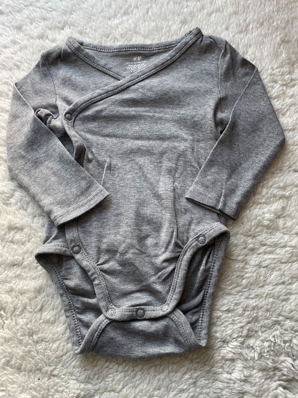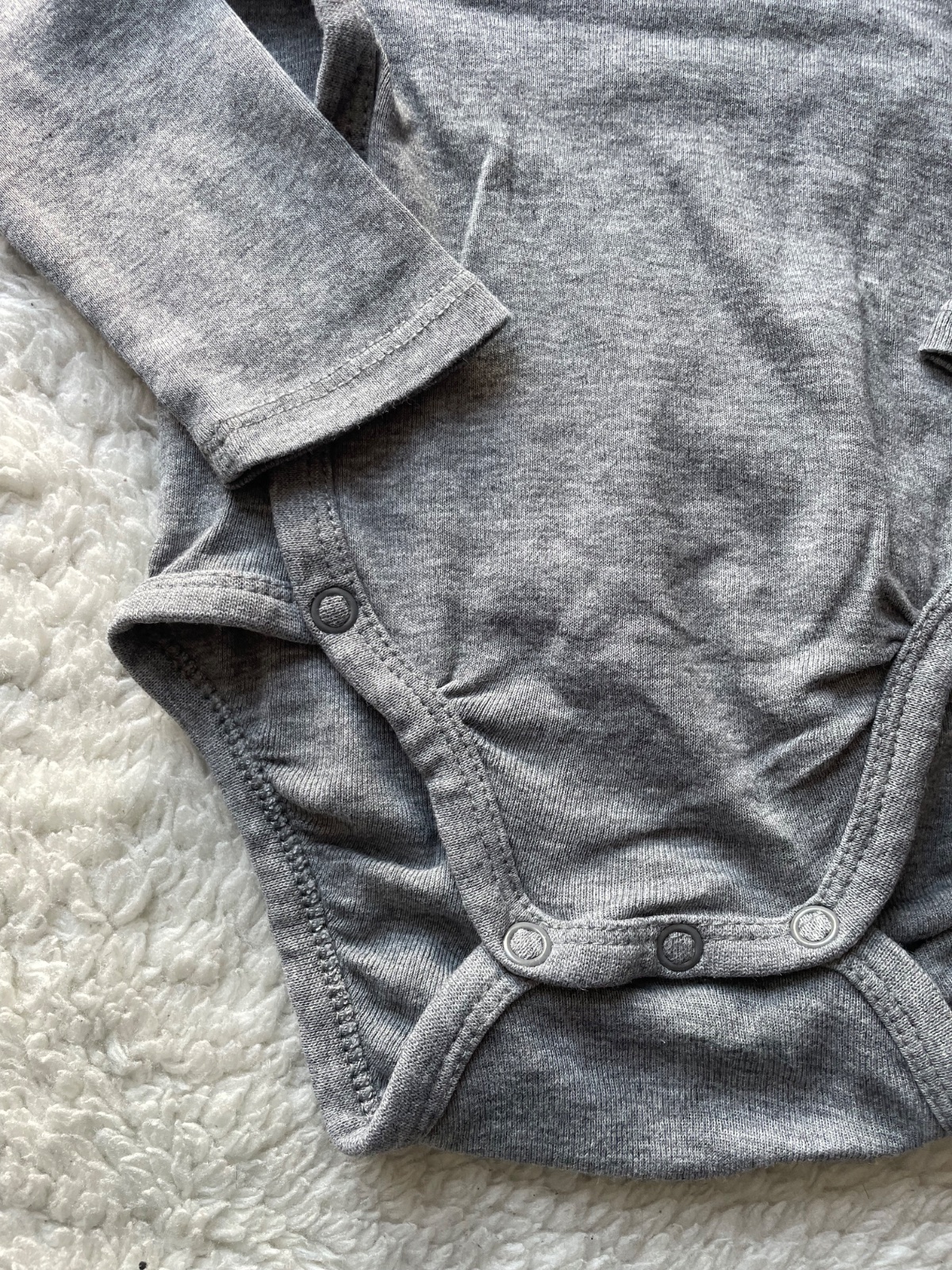 Bavlnene zavinovacie body vo velkosti 68 v sedej, tmavosedej a 2 v bielej farbe, bez dier, len biele maju na rukave fliacky, vid foto a jedno biele ma vypraty velkostny stitok, bez pracieho chlpu