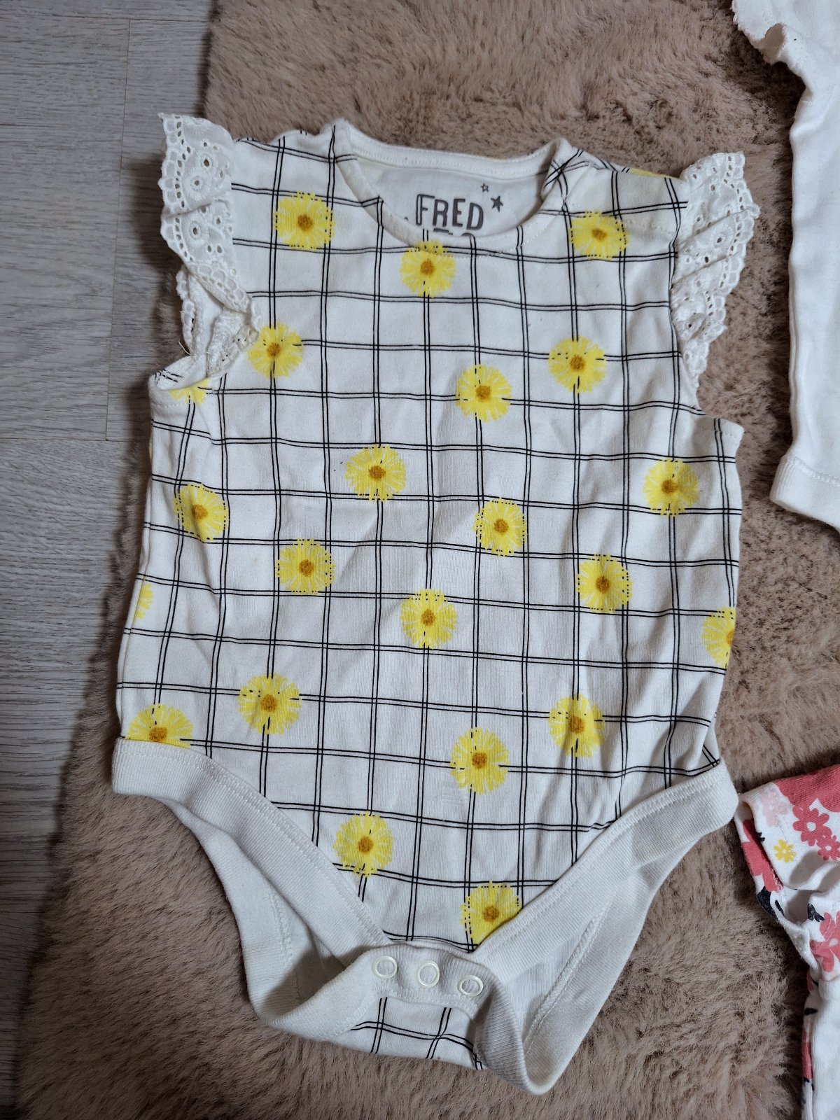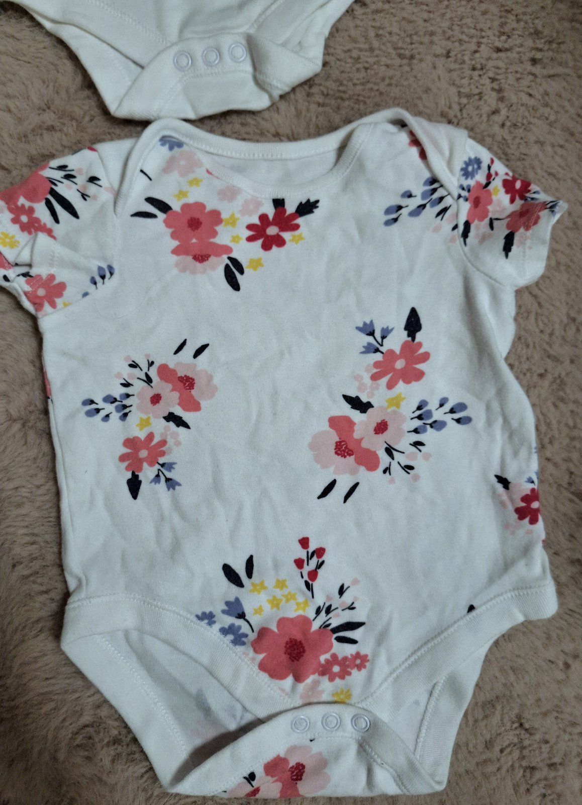 Nosene bodicko s ruzovymi oblacikmi, bez dier a flakov, na oblacikoch vidiet znamky prania, uz su uplne svetlulinke, minizmolky.