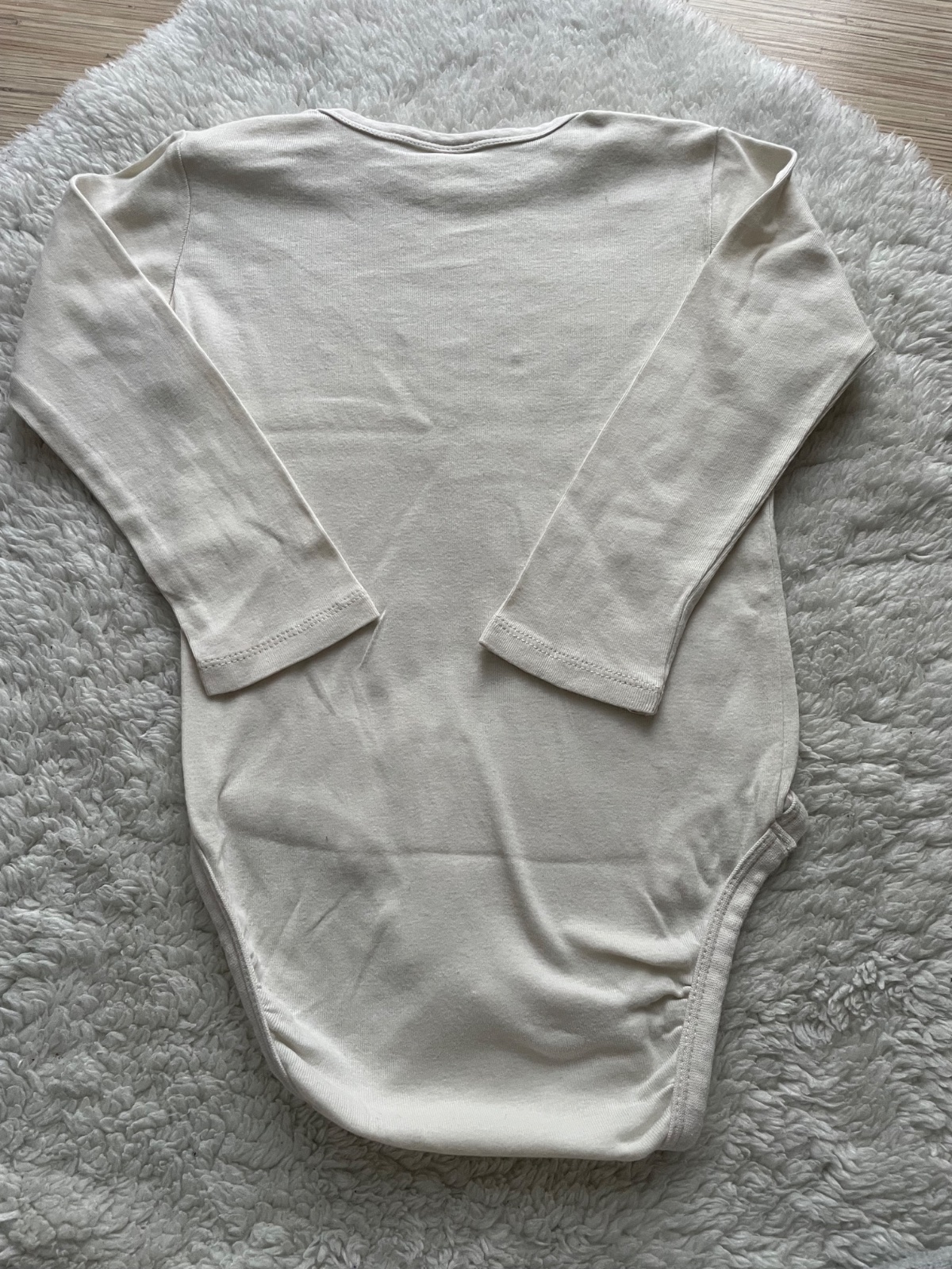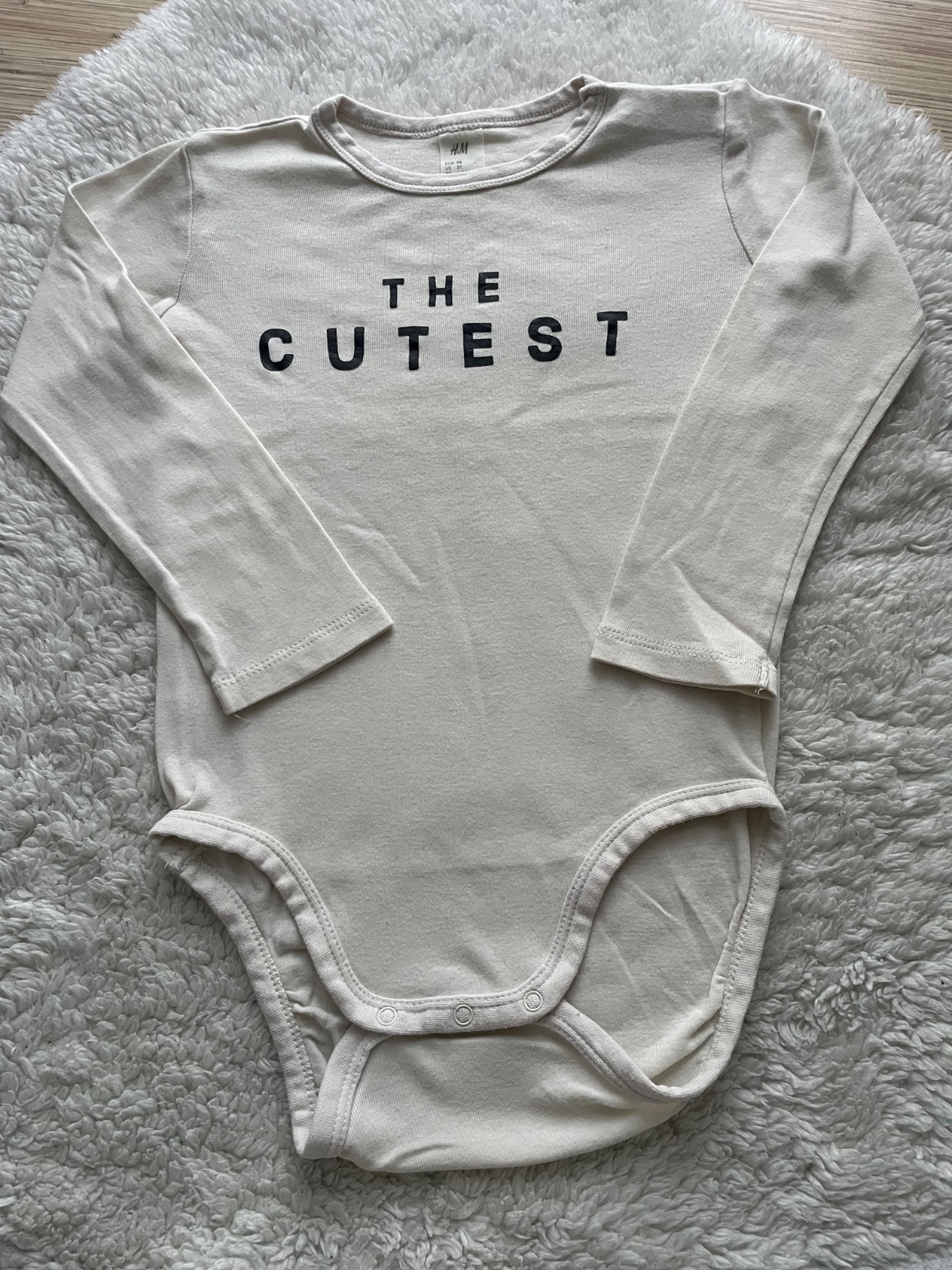 Kremove bavlnene body s napisom The Cutest, so zapinanim na cvovky, cvocok aj pri krku pre lepsie obliekanie, bez dier a flakov, raz oblecene, ako nove