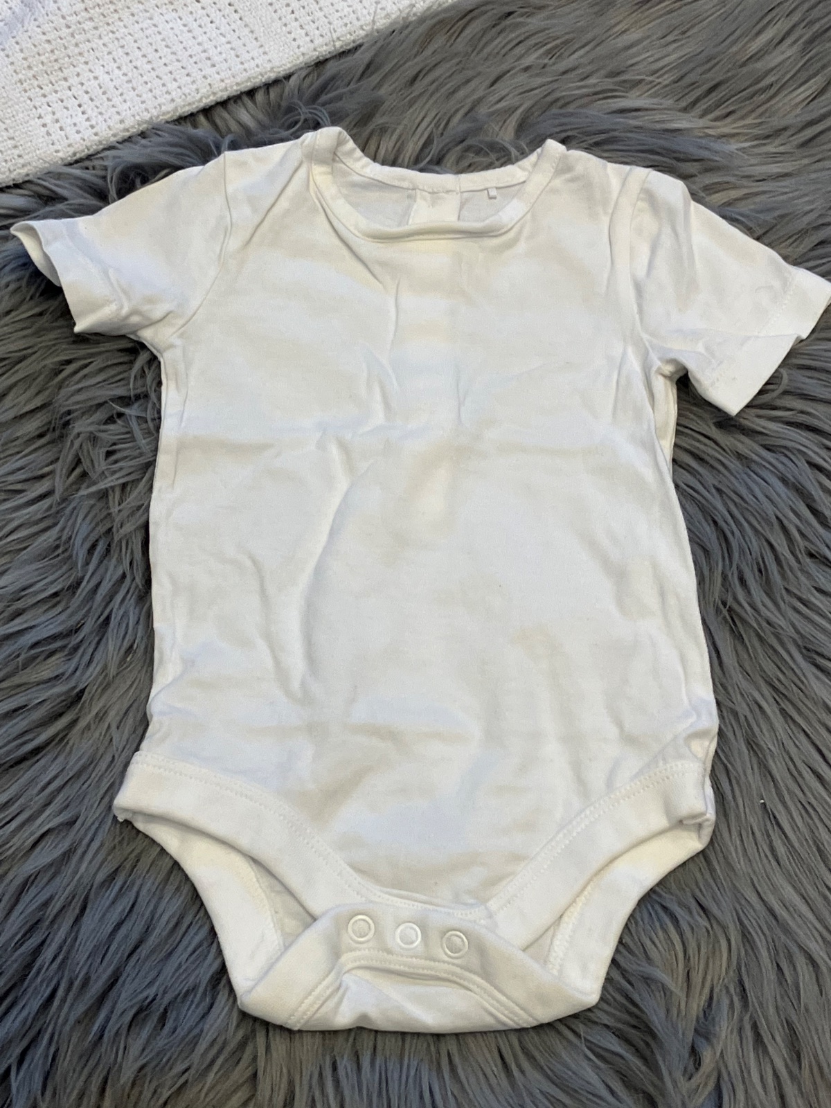 Chlapčenské body s krátkym rukávom, zapínanie na chrbte na gombíky a na spodku na cvoky, elastické, farba slonová kosť. Materiál 100%bavlna.