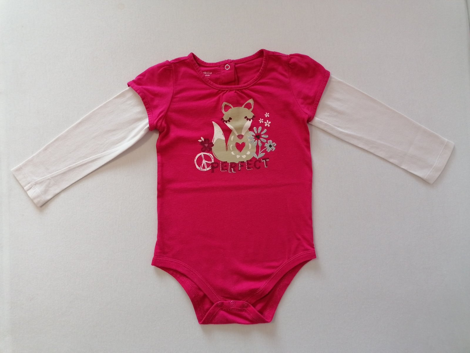 Bavlnene body s milym obrazkom líšky a napisom "perfect", velmi dobry stav.