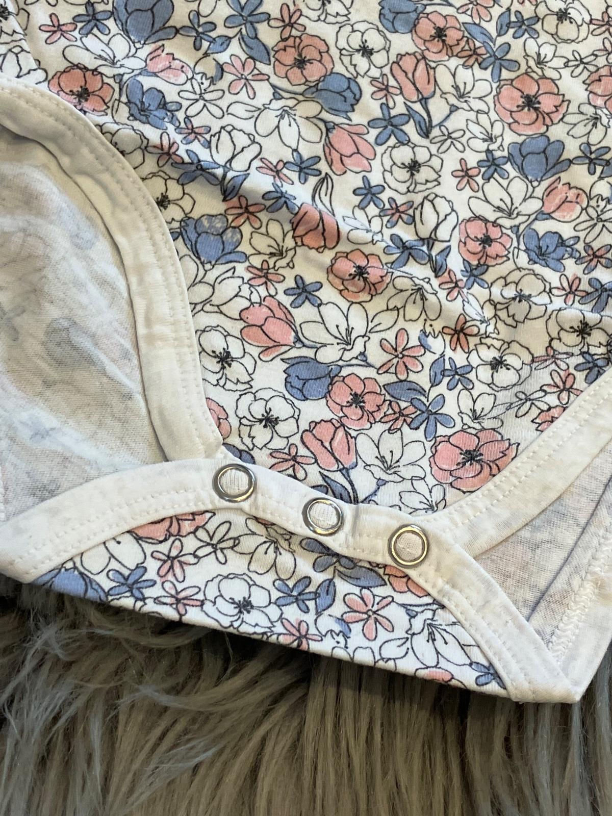 Dievčenské kvetované body s krátkym rukávom, elastické, zapínanie na spodku na cvoky, farba bielo ružovo modro čierna. Materiál 100%bavlna.