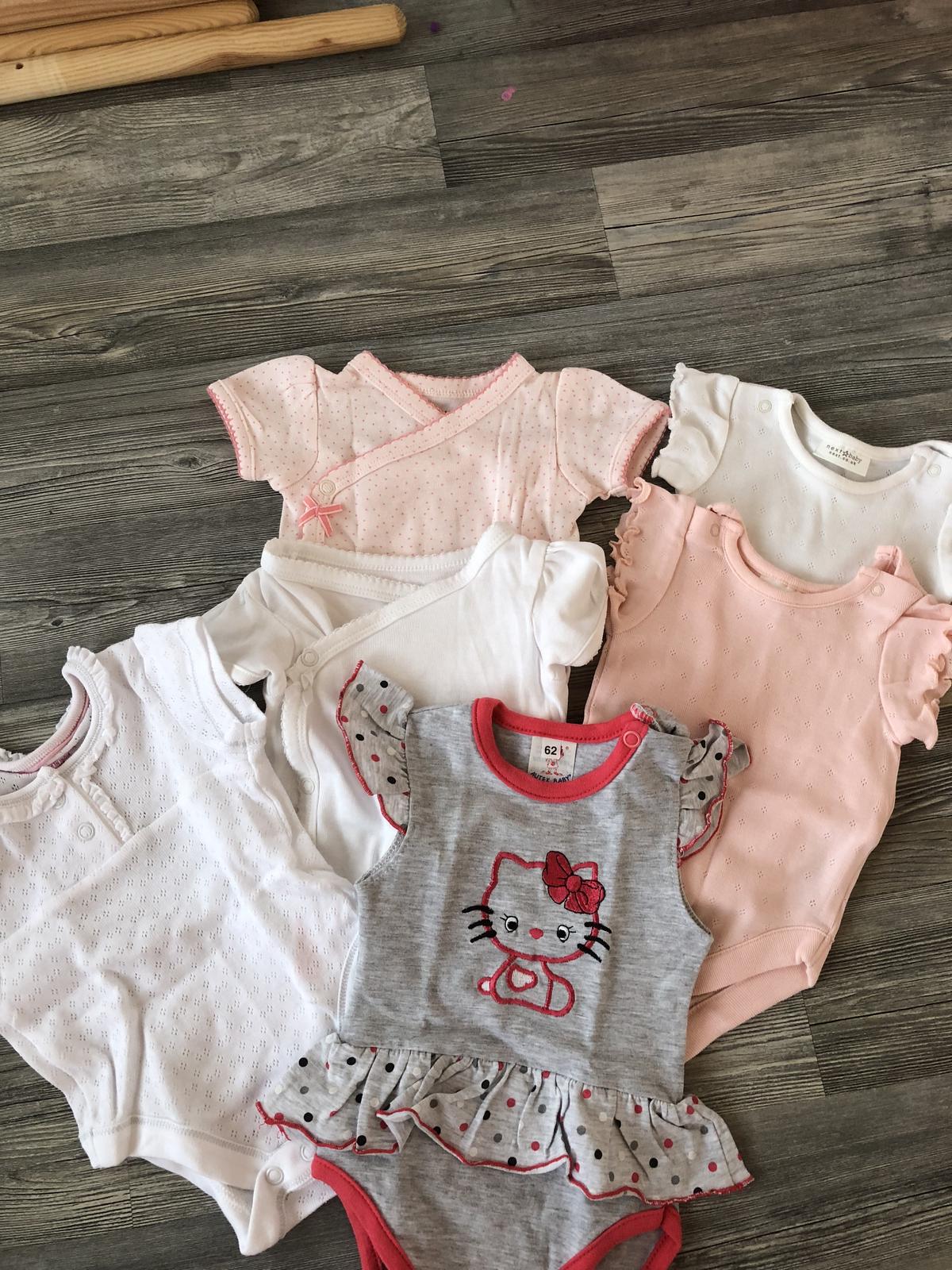 Predam body s kratkym rukavom,oblecene mozno 3 krat-ako nove,z prava volanikove rukavy Next,vedla H&M,spodne F&F,sede suknickove Autex Baby c.62,vsetky su ako nove,cena spolu.