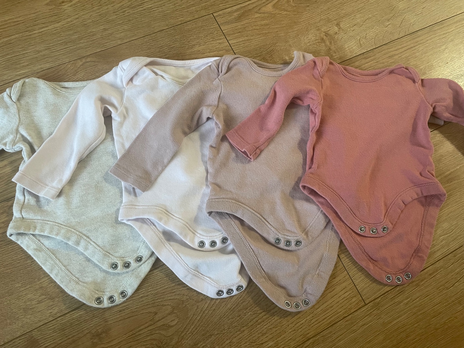 Nosene body. Zachovale. Biele mačičkove a jedno ružove bez fľakov, biele s kvietočkami malo fliačik - miesto nich maľovane srdiečka ( nevypratelne kvalitne farby na textil), jedno ružove akoby bati...