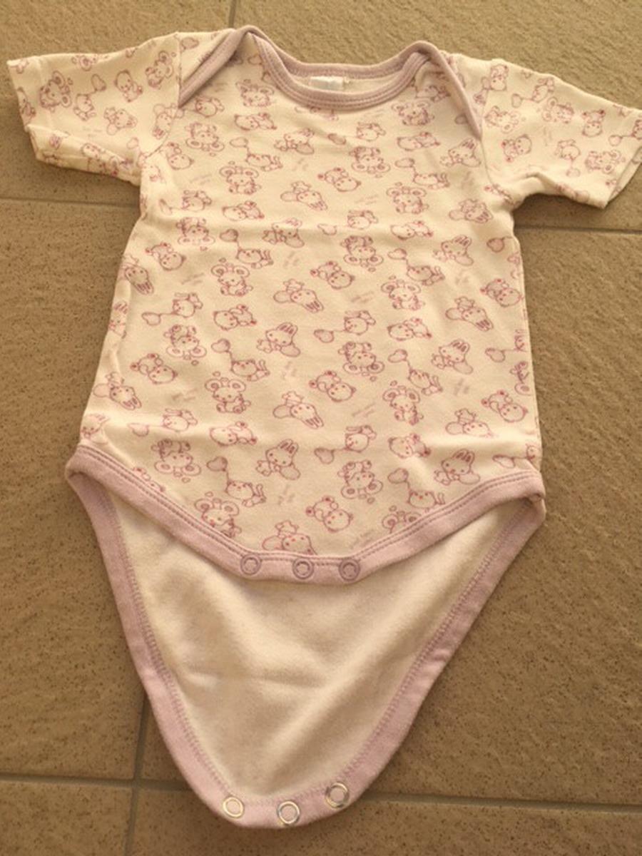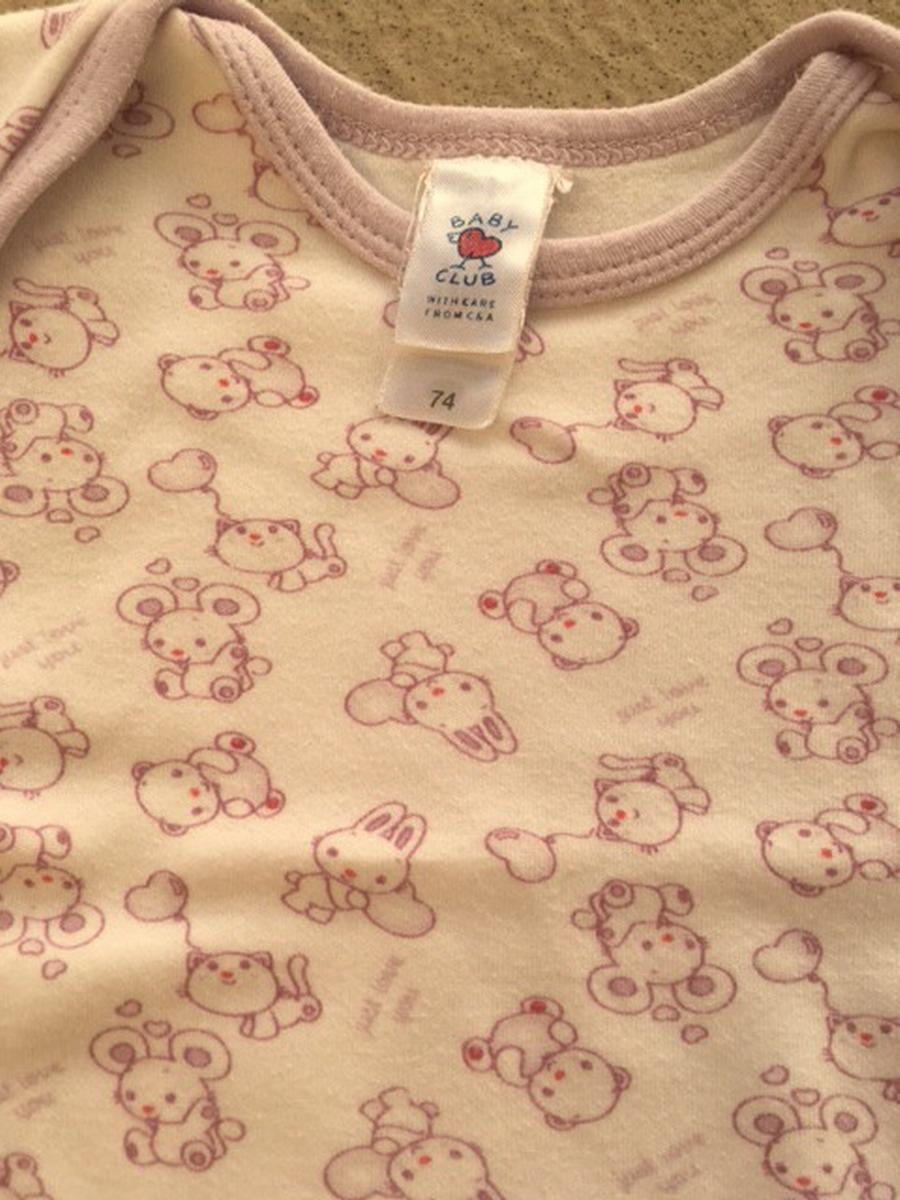 Predám nosené body s krátkym rukávom pre dievča, veľkosť 74, kúpené v C&A. Body sú bielej farby s fialovým lemom a s obrázkami zvieratiek, 100 % bavlna