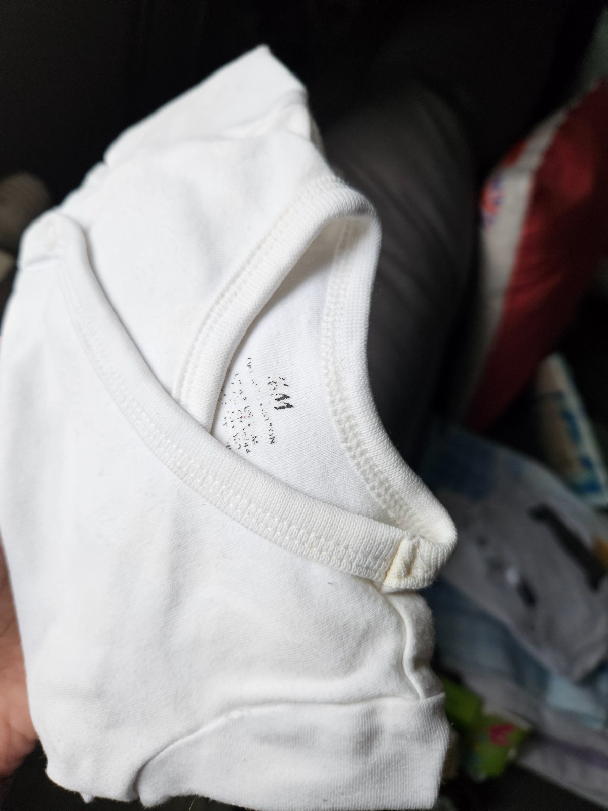 Chybička je, že bodyčko je zažltnuté okolo goliera, snažila som sa to odfotiť ale nie je to moc vidieť a písmenká veľkosti a značky sú už zožúchané.
