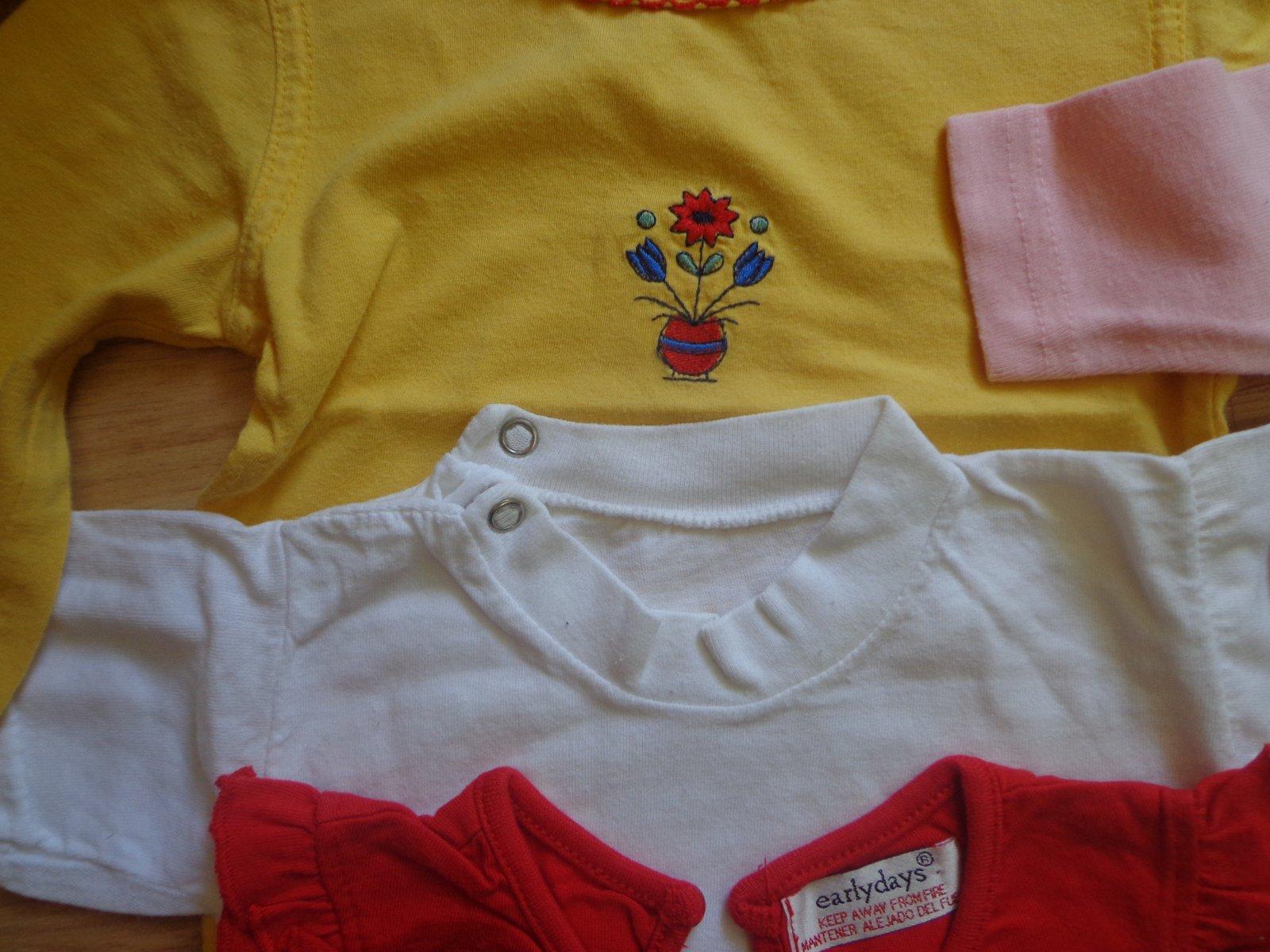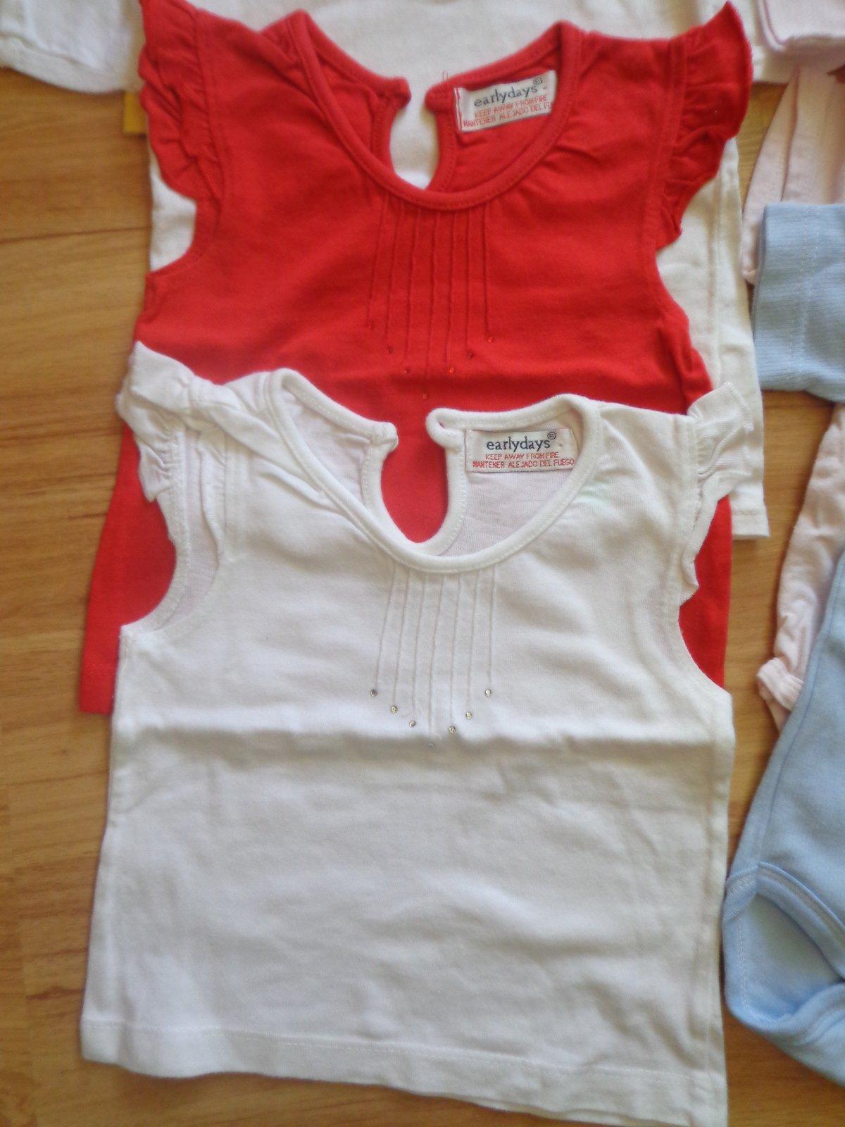 Tričká v 100% stave, veľkosť zodpovedá 74-80. Sú nádherné, oblečené asi 2x, lebo nám boli LTT. Krásne vypracovanie, kamienky. Pre malú parádnicu k sukničke ako stvorené, odporúčam, pekne ukážu. Zapínanie na krku na 1 gombíček pre ľahšie obliekanie. Červené a biele. Cena: 5 Eur, cena spolu. Značka Early Days