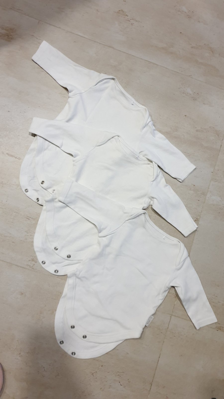 Predám 3ks biele body. Veľkosť 3-6 mesiacov. Používané, ale v dobrom stave, bez fľakov a poškodení.