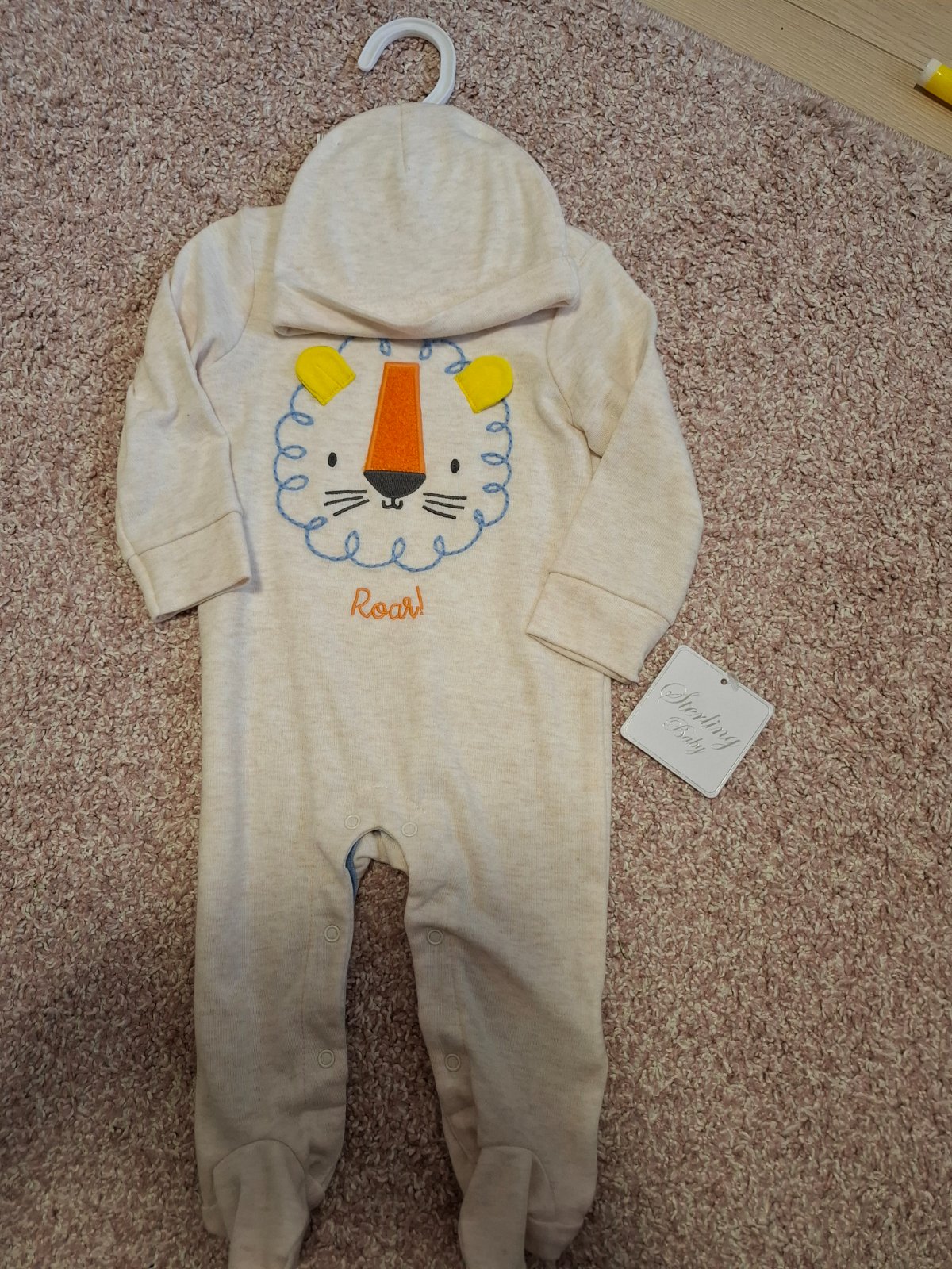 Predam nadherne nove dlhe body z Ameriky,zn.STERLING BABY,set s ciapkou,dolu medzi nozkami na cvoky, cista bavlna,krasny motiv levika s uskami...uvedena velkost 9mes., rada doplnim rozmery, +postovne 2eura, vhodne ako darcek...
