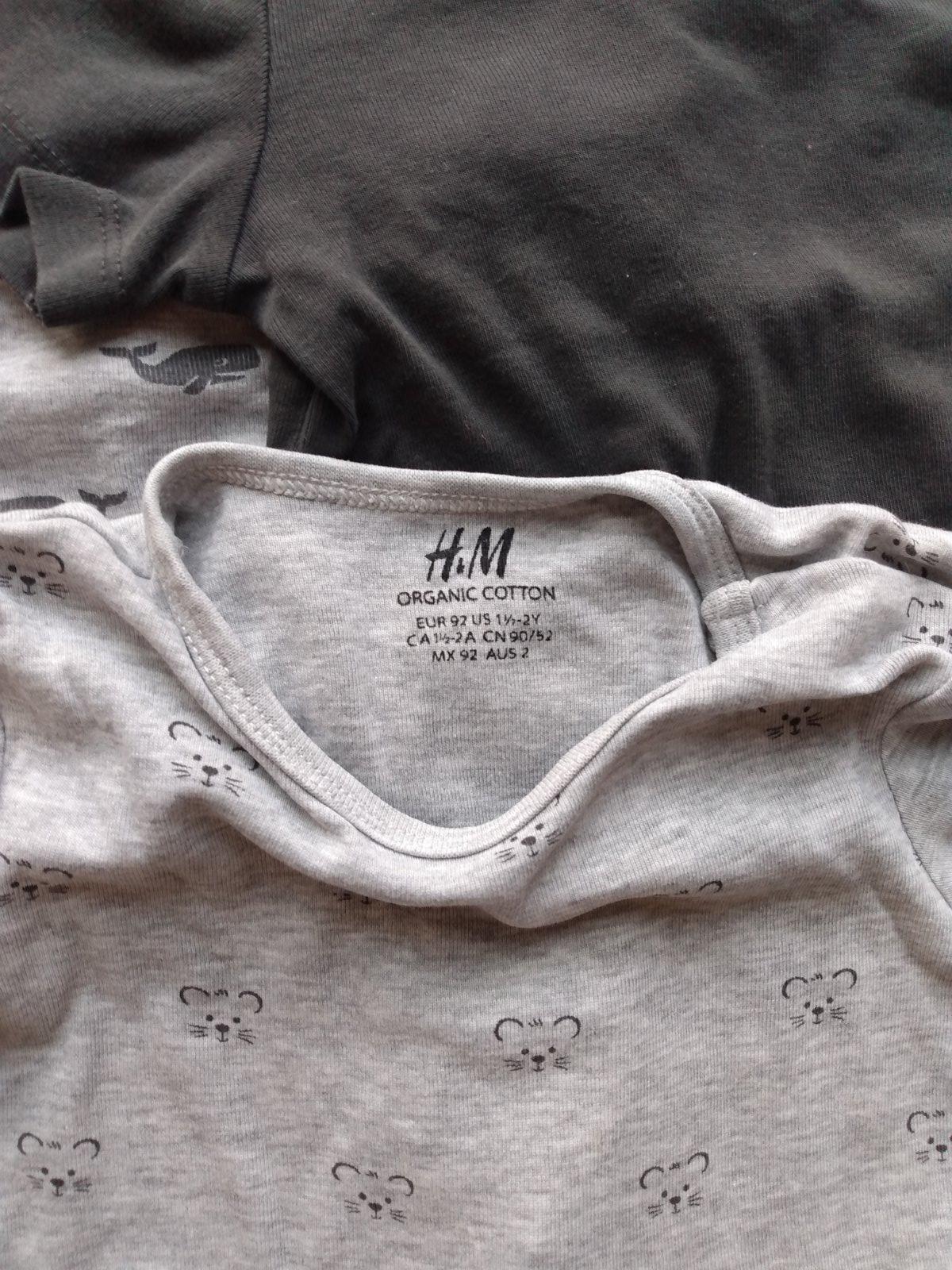 Set 5 body z organickej bavlny. Na foto su len 4, ale ešte som našla piate, rovnaké biele ako na foto. Čiže 2x biele, 1x sivé s macíkmi, 1x sivé s veľrybami a 1x tmavosivé. Sú takmer ako nové, u nás nosené na spanie. Inak sú veľmi vkusné a dobre kombinovateľné. Cena spolu za všetky, bez pošty