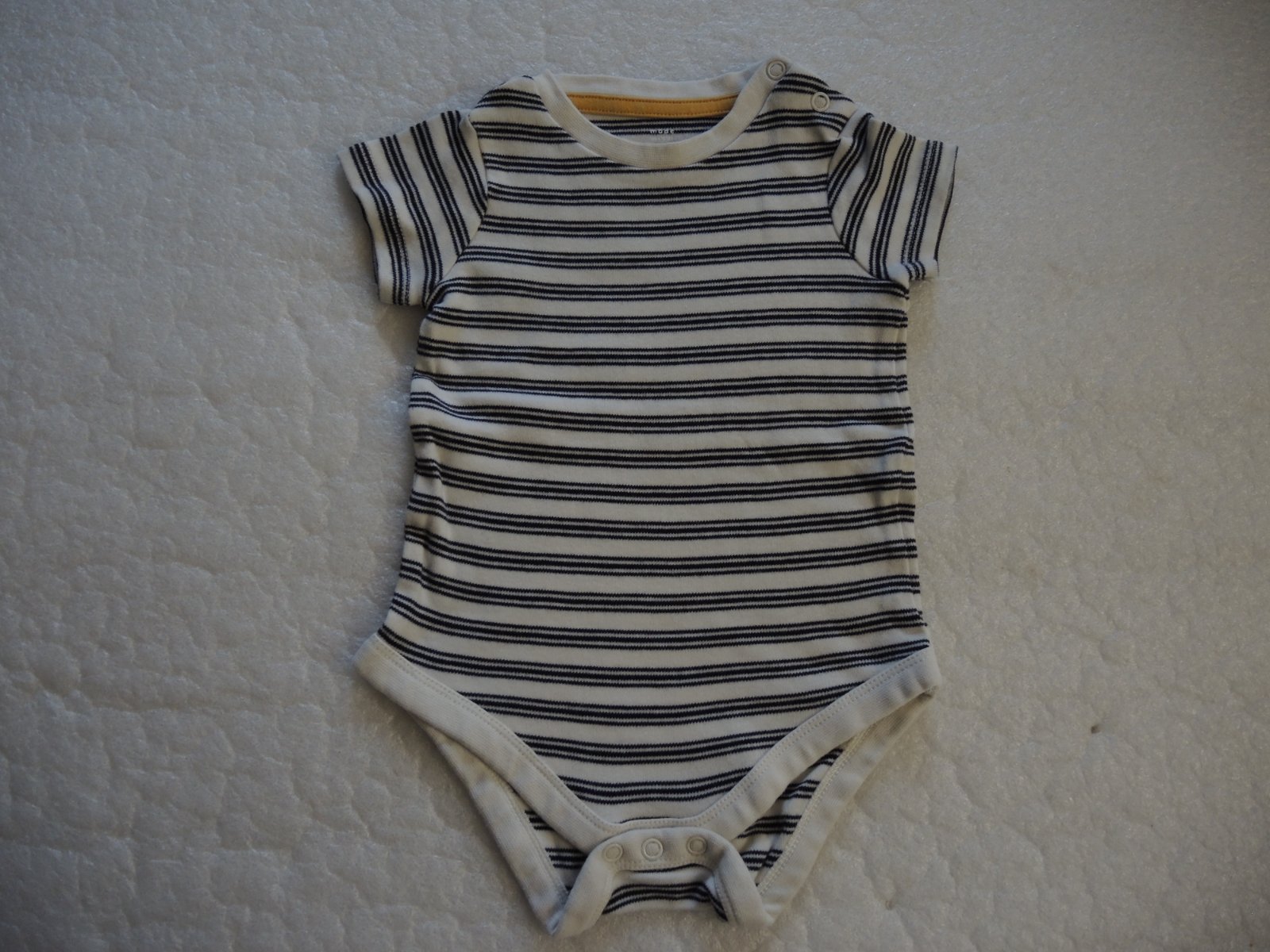 Predám krásne body krémové s čiernymi pásikmi. Na pliecku pukačky na ľahšie prevlečenie hlavičky cez bodíčko. Je troška hrubšie, vhodné na prechod. Veľkosť síce píšu č 80, ale sedí na 74. Preto sme ho mali len 1x. Čiže top stav. Dĺžka je 41,5 cm.