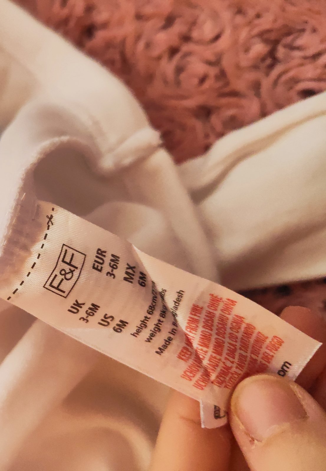 Predám detské body, značka F&F, č. 68. Biela farba s ružovými bodkami. Cena 1 €.