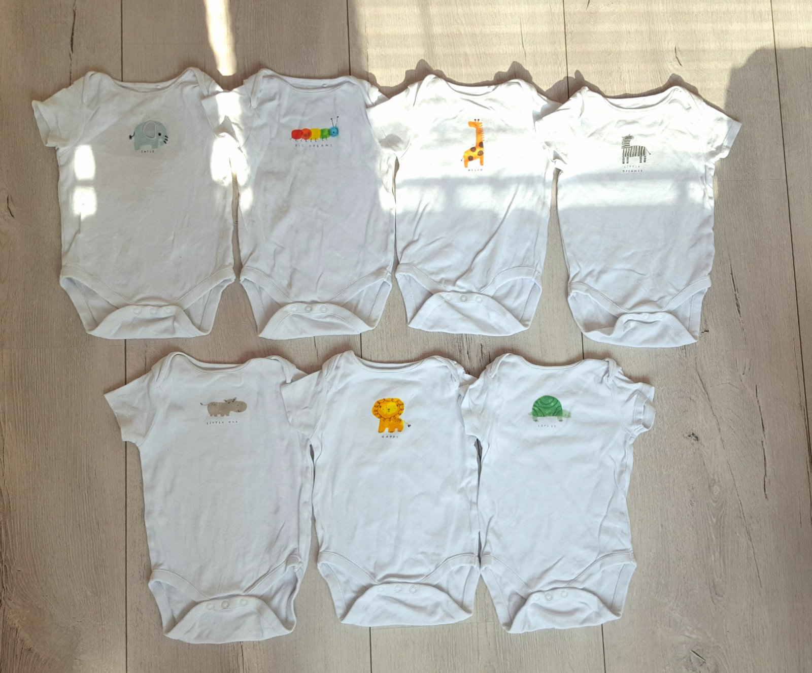Sedem bodyniek s kratkym rukavom v peknom nosenom stave (jedno na donosenie), cena spolu