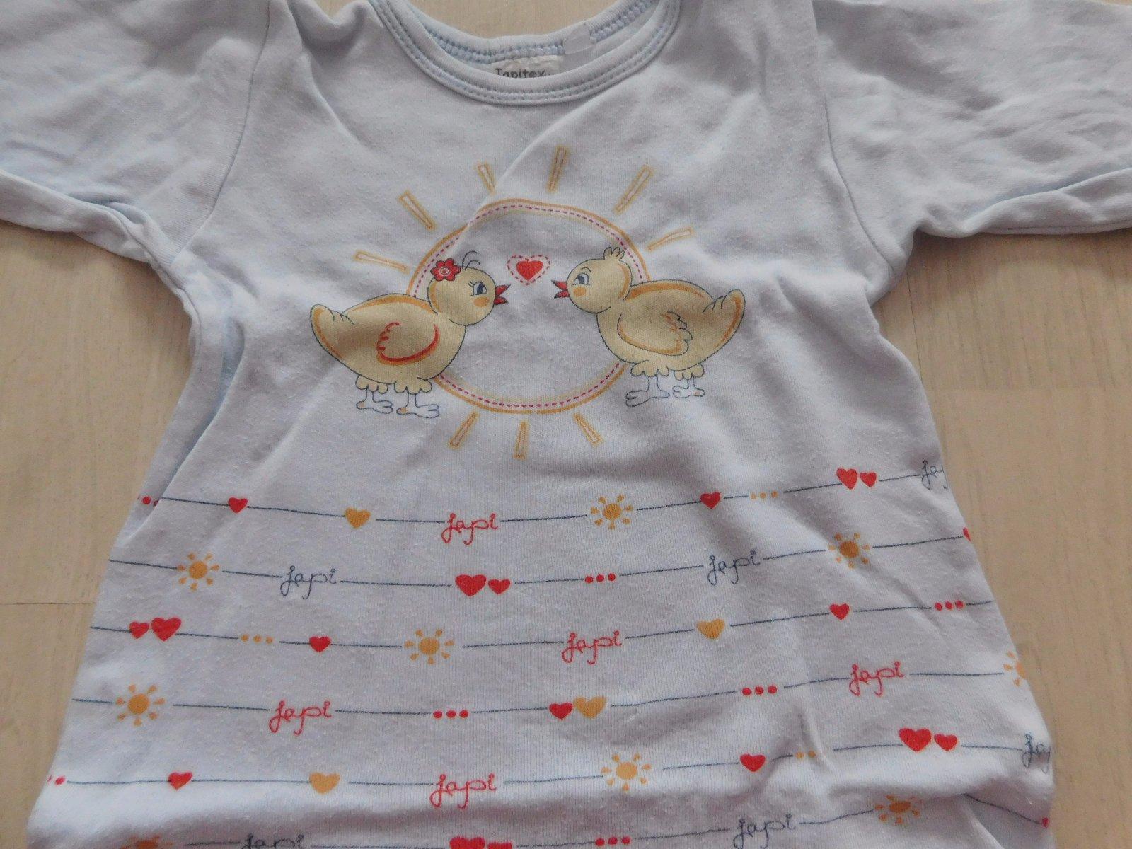 Nosené v dobrom stave. Veľkosť napísaná 62/68, ale je to skôr 68/74. Cena spolu