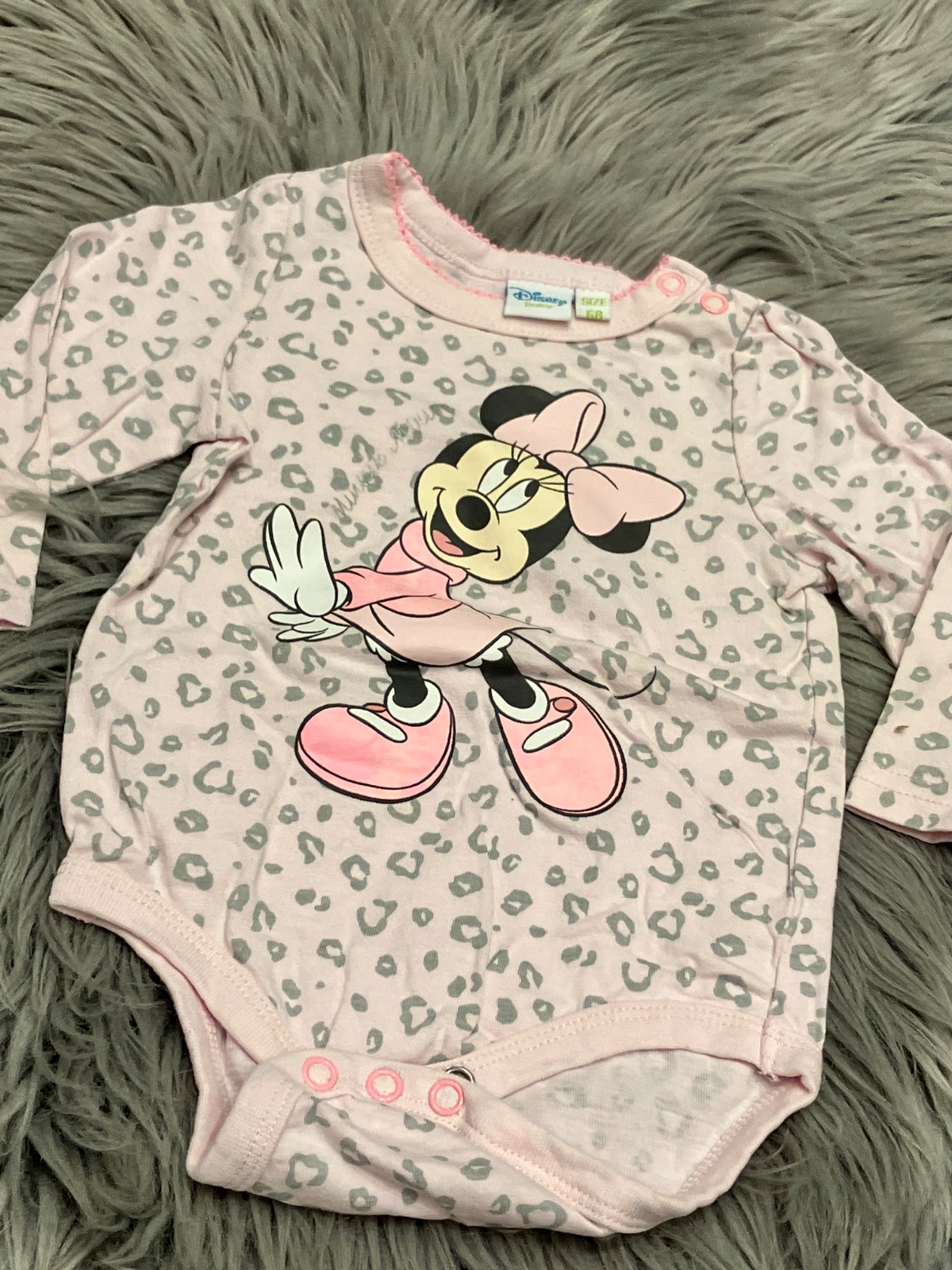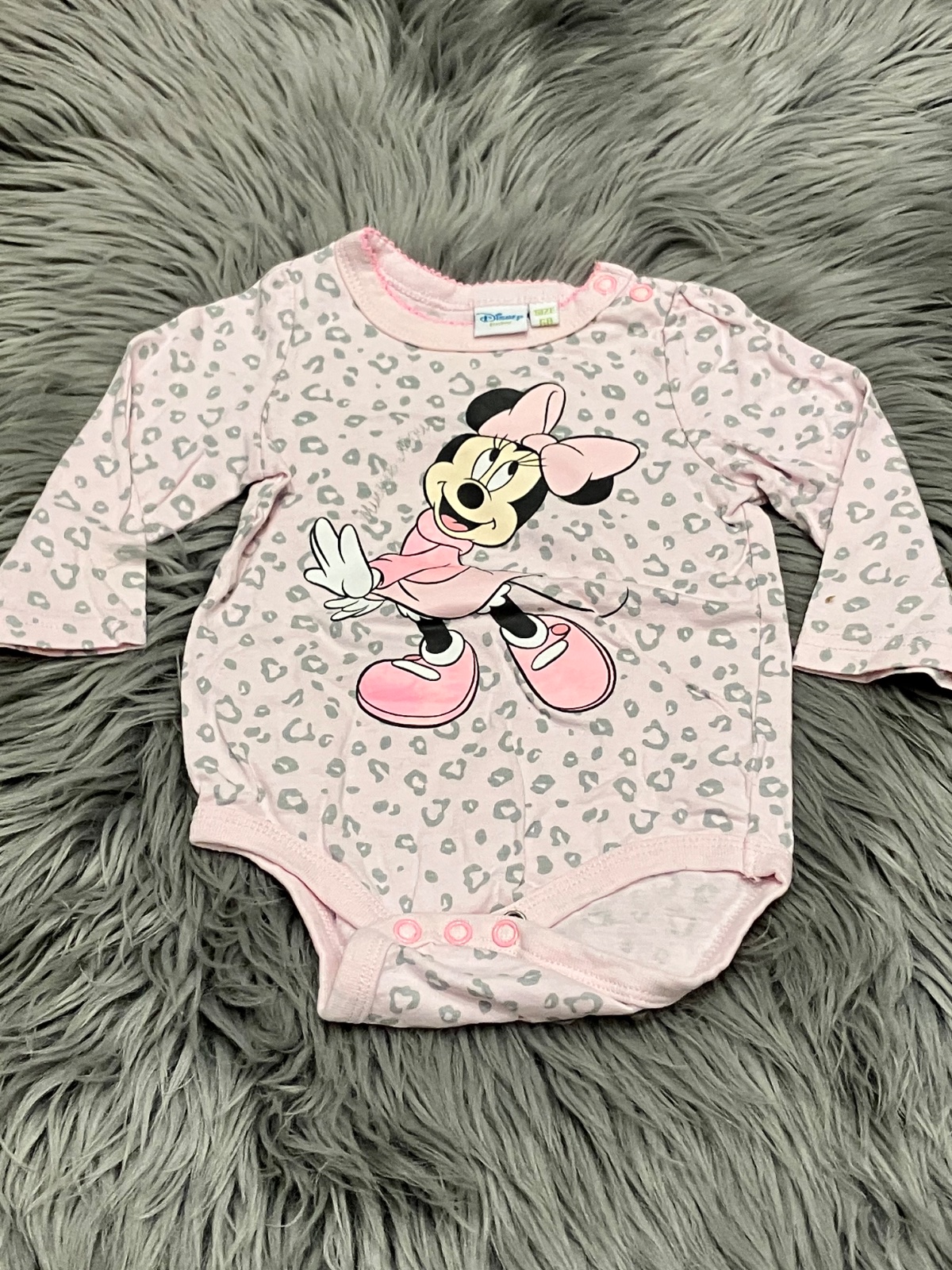 Dievčenské body s dlhým rukávom a potlačou Minnie, jemne elastické, zapínanie na cvoky.