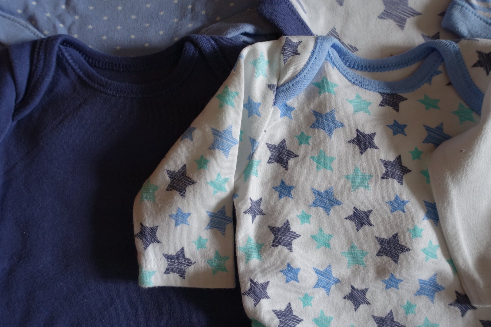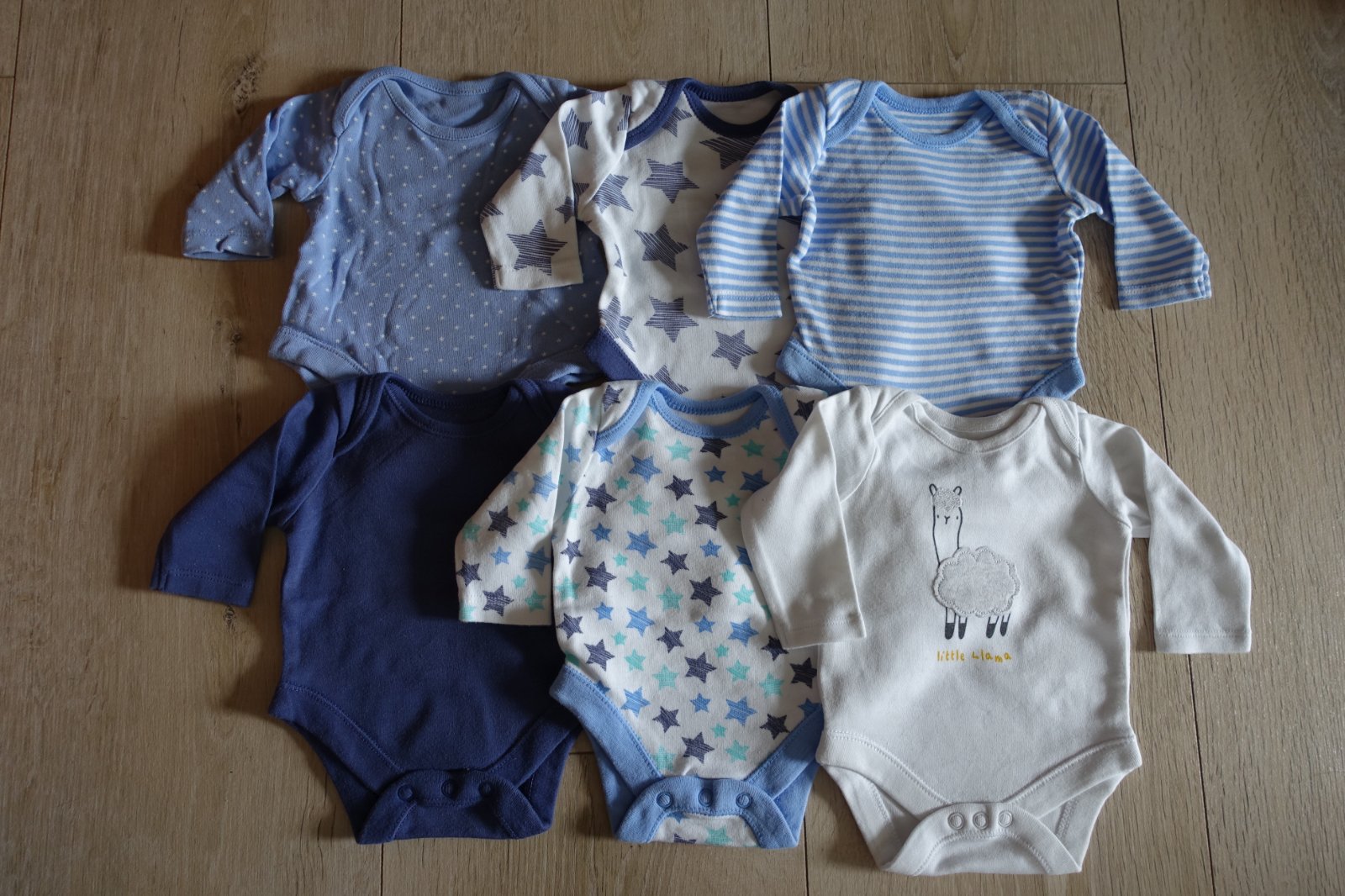 Predám 5 ks bavlnené body f&f, 1 ks bavlnené body s lamou - iná značka. Veľkosť f&f body je 50, váha je pre detičky do 3,4 kg. Boli kupované nové, vypravé a mali sme ich 1x. Modré s hviezdičkami sme mali 2x. Trolinka sa mi zdá, že sa začína na ňom robiť chĺpoček z prania, ale iba pri naklonení. Nie je žmolkavé. Inak sú v peknom stave. Celková dĺžka od pliecka po spodok pri zapnutí 28 cm. Body s lamou má dĺžku 30 cm. Cena spolu za všetky body. (B)