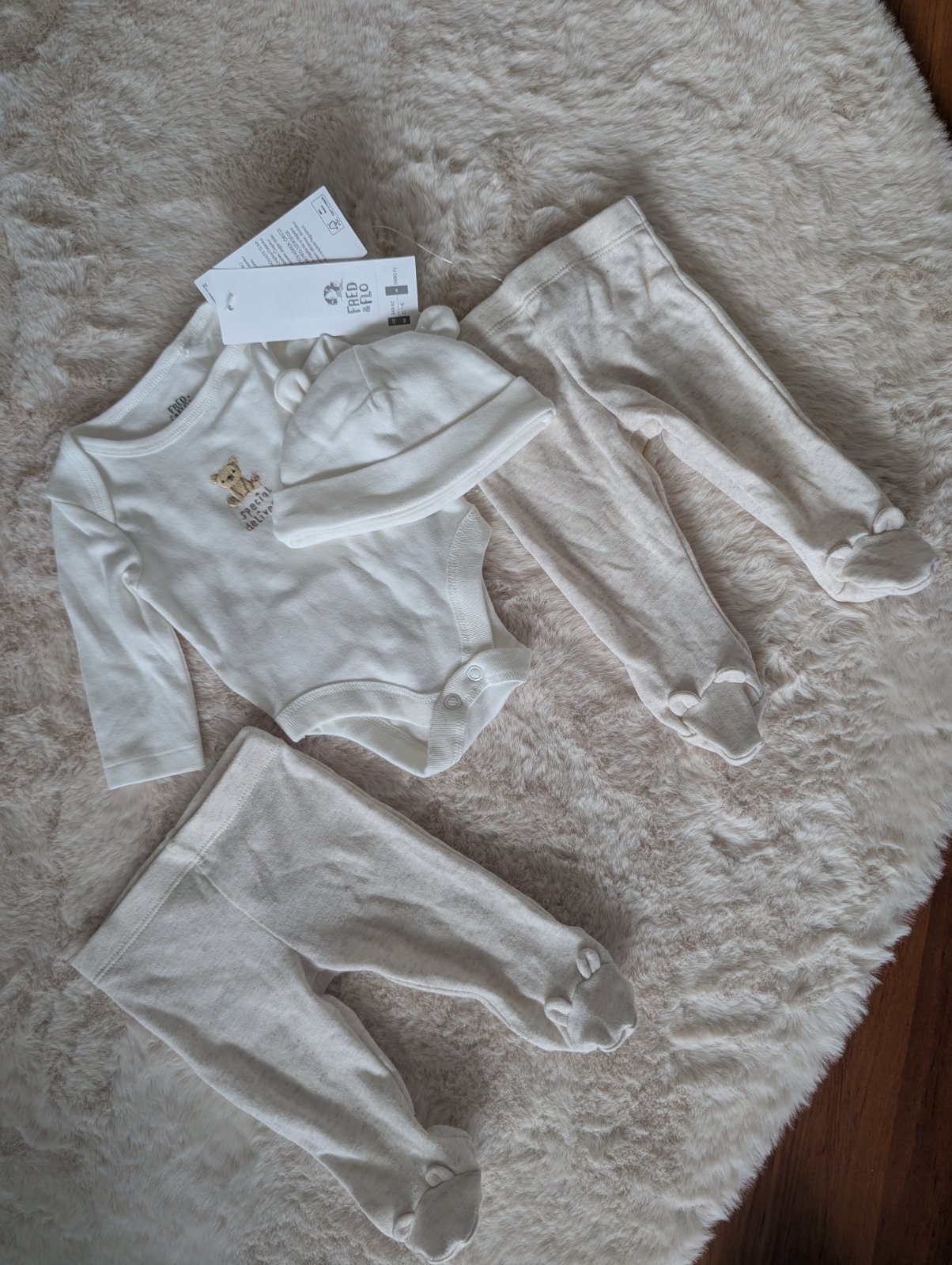 Nový detský set, ktorý má uvedenú veľkosť "Newborn" teda 50. Vhodné aj ako darček.