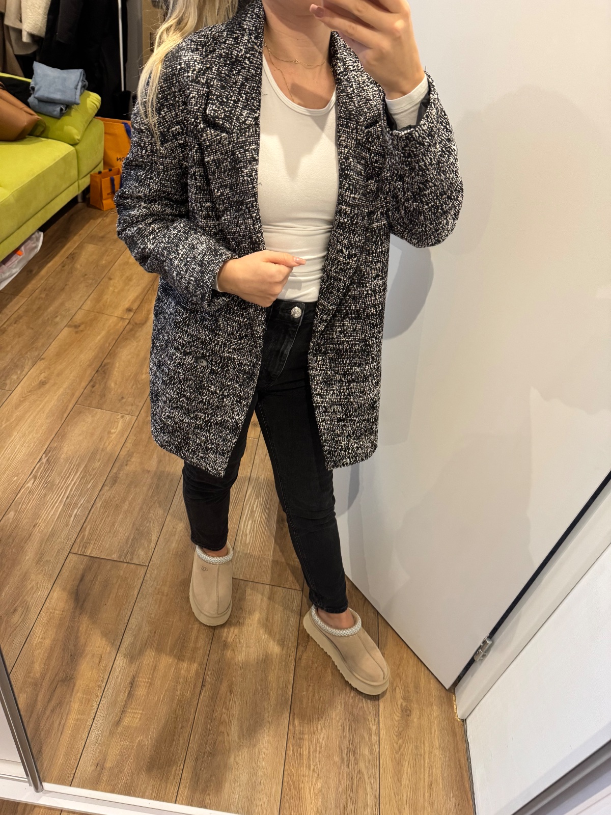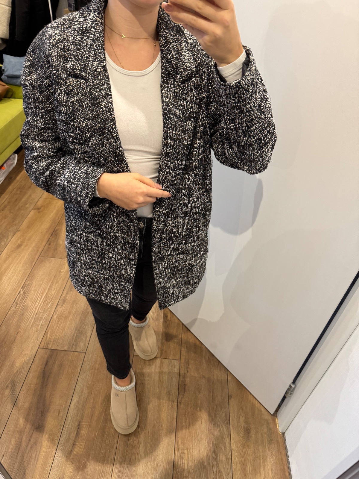 kabátik/sako je trochu hrubšie, oblečené raz, ako nový :) je to 34ka ale sedí aj na 36tku
