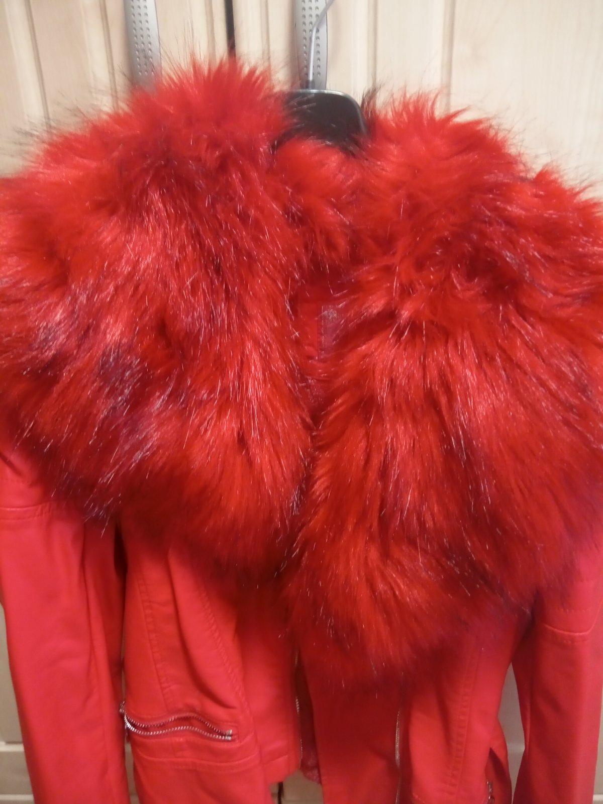 Krasna tmavo prechadza do svetlomedenej farby málo nosená nepoškodena nemám k nej kapucnu stratena pri sťahovaní. Dlžka 88cm rukav 63cm prsia 100cm pas 94cm boky 102cm velkost 36-38.