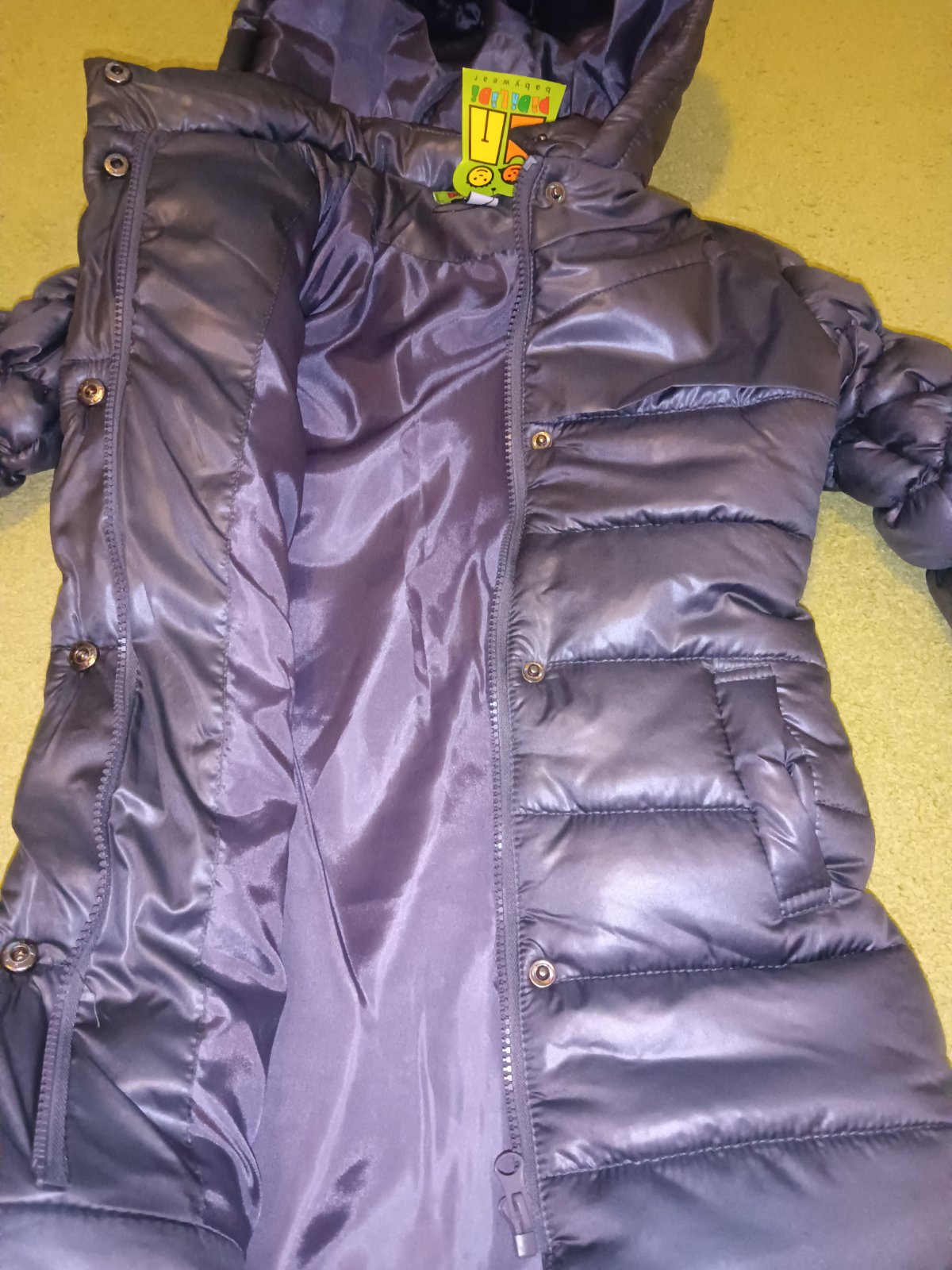 Dievčenský prešívaný, teplučký kabát - bunda PUFFY Buggy zn. Pidilidi, v zaujímavom kovovo-lesklom, šedom, modernom, farebnom prevedení, úplne nový s visačkami. Fotky sú s bleskom aj bez zle sa to fotí, keďže bunda má odlesky
