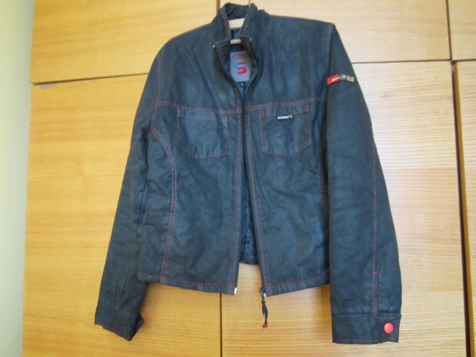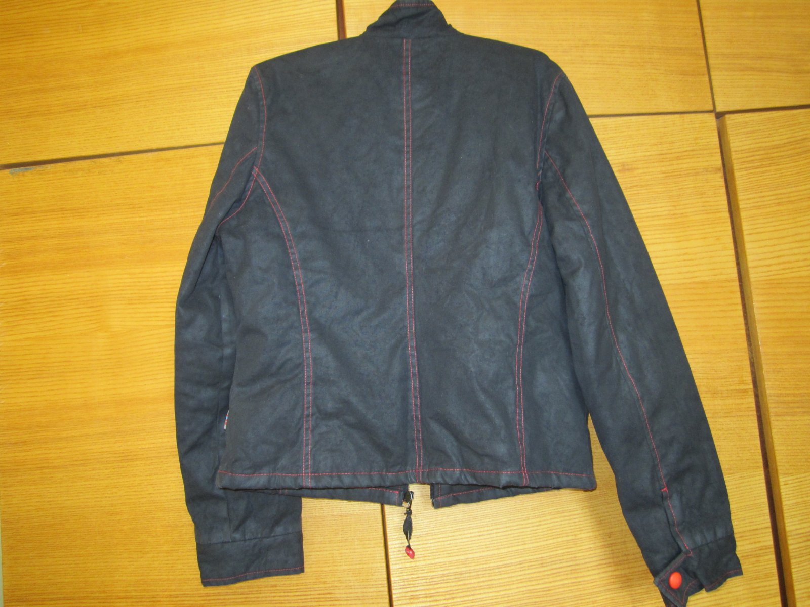 Prechodná tenká vetrovka v peknom nosenom stave,bez dier či fľakov,zapínanie na zips,,dĺžka-55,5cm ,šírka 2x 48cm ,rukáv od krku-72,5cm.............+ pošta