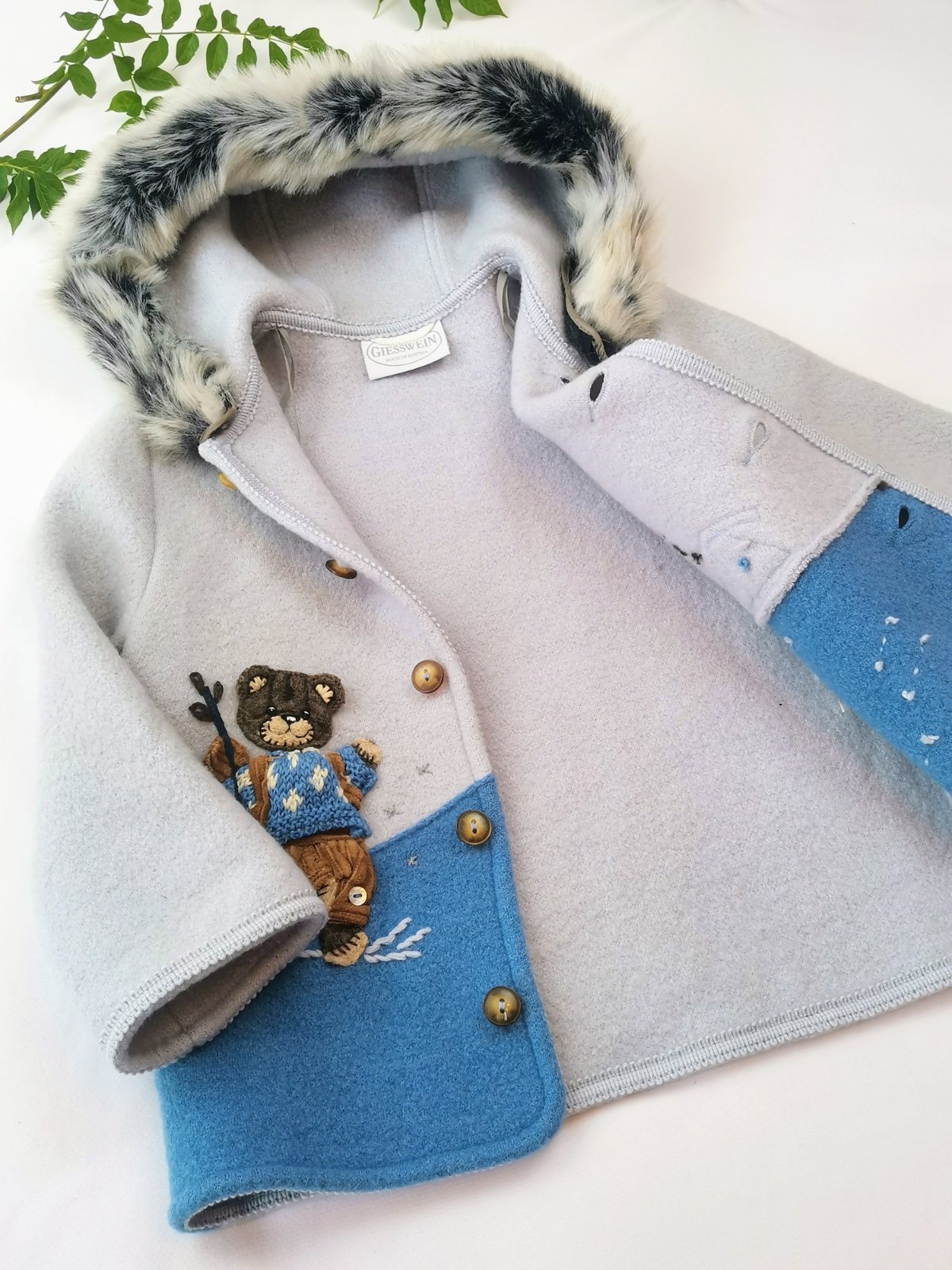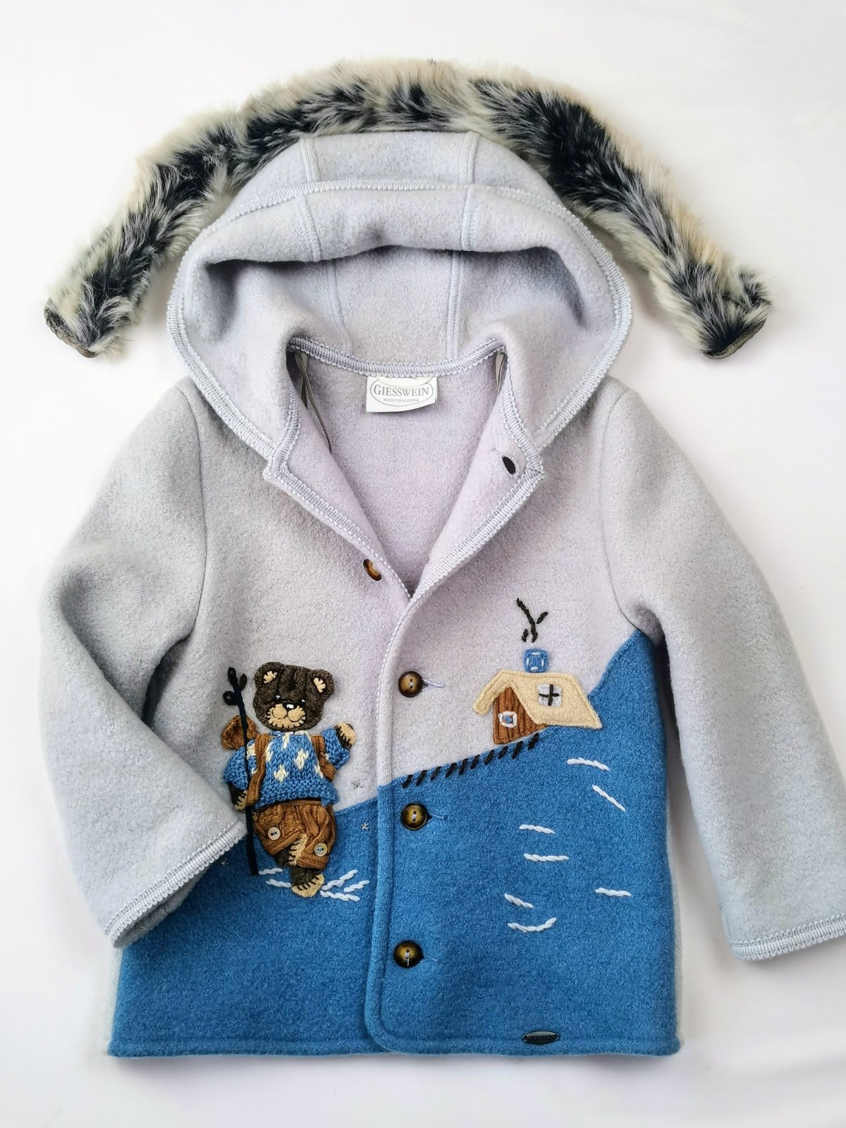 Kabátik očarí roztomilým ručne vyšívaným obrázkom na predných dieloch.