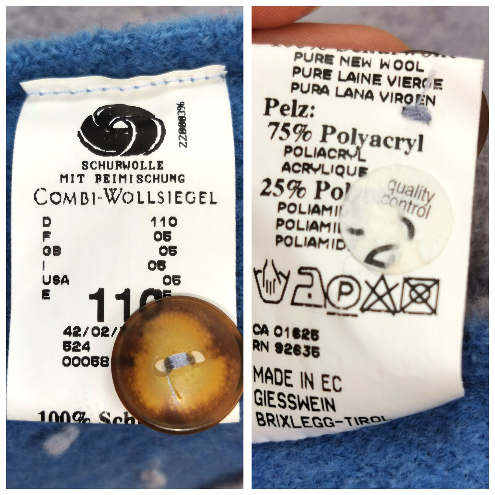 Kabátik je zhotovený zo 100% panenskej ovčej vlny.