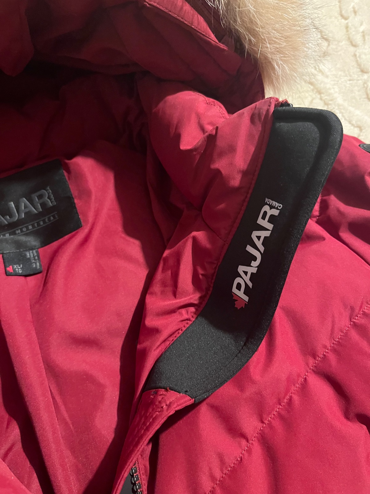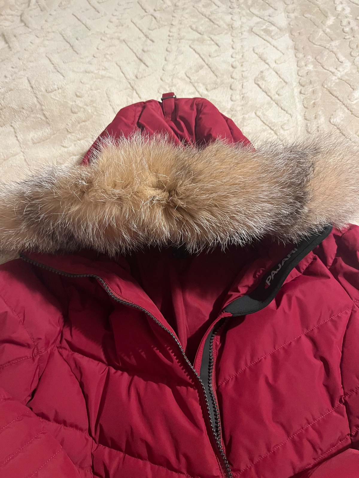 Nádherná luxusná paperova zimná bunda do tuhých mrazov, až do -30 stupňov, 100% stav, zn. Pajar, canada, mala som ju oblečenú raz ma chvíľku, a už mi je úzka:-(, je prekrásna s pravou kozusinou na kapucni, perfektne detaily, krásny postave lichotiaci strih, hrubá, úžasná, v tejto vam zima určite nebude..pc týchto búnd sa pohybuje okolo 400-500€..rozmery cez prsia max 55x2, vel XL, no je to taká menšia XL, skôr Lko..ponúkam za zlomkovu cenu oproti pôvodnej..