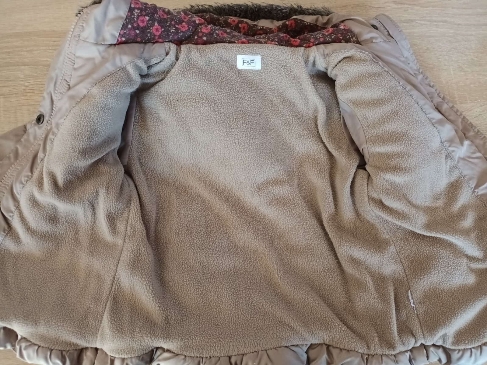 predam zimnu bindicku velkost 86 ale ponosite aj dlhsie teplucka hneda s ruzovou flis.podsiv., kapucna na cvoky odnimatelna, dlzka 36,5 cm, sirka 35 cm, dlzka rukava 38/32cm, je vo vynikajucom stav...