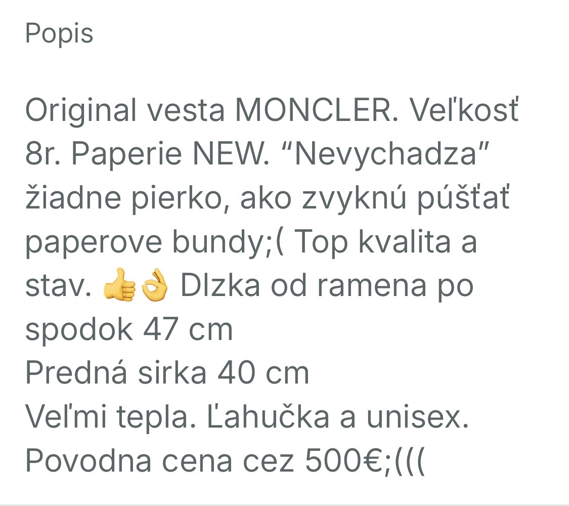 Original Moncler besta. Unisex. Ľahučka a tepla. Papetie