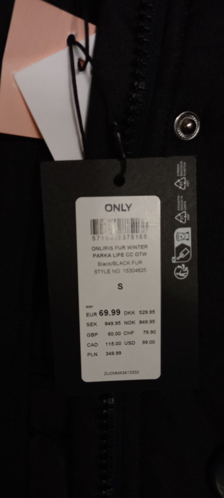 Zimná bunda zn. Only, veľkosť S, super stav, málo nosená, nepremokavá, teplá, cena 34 €.