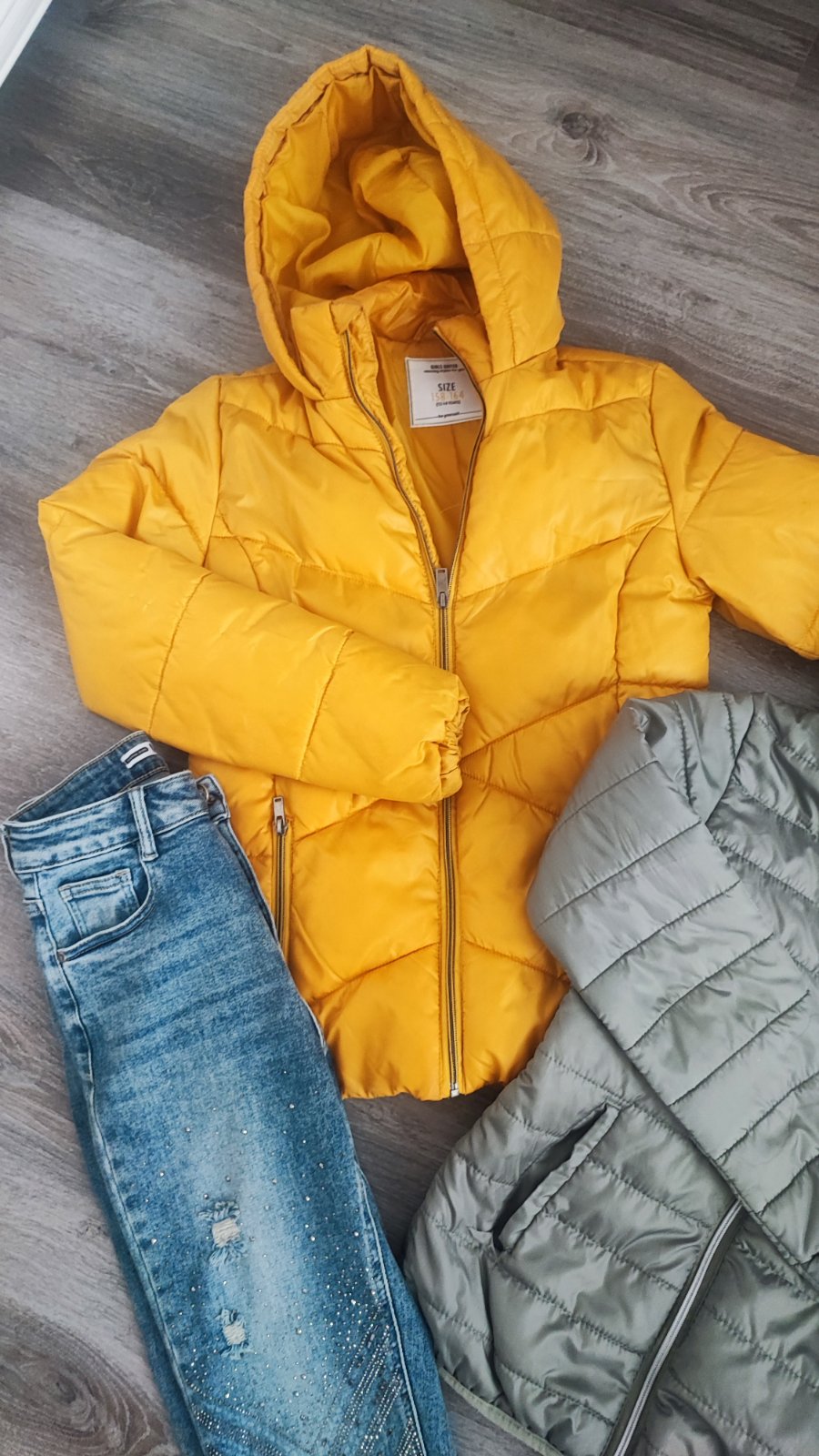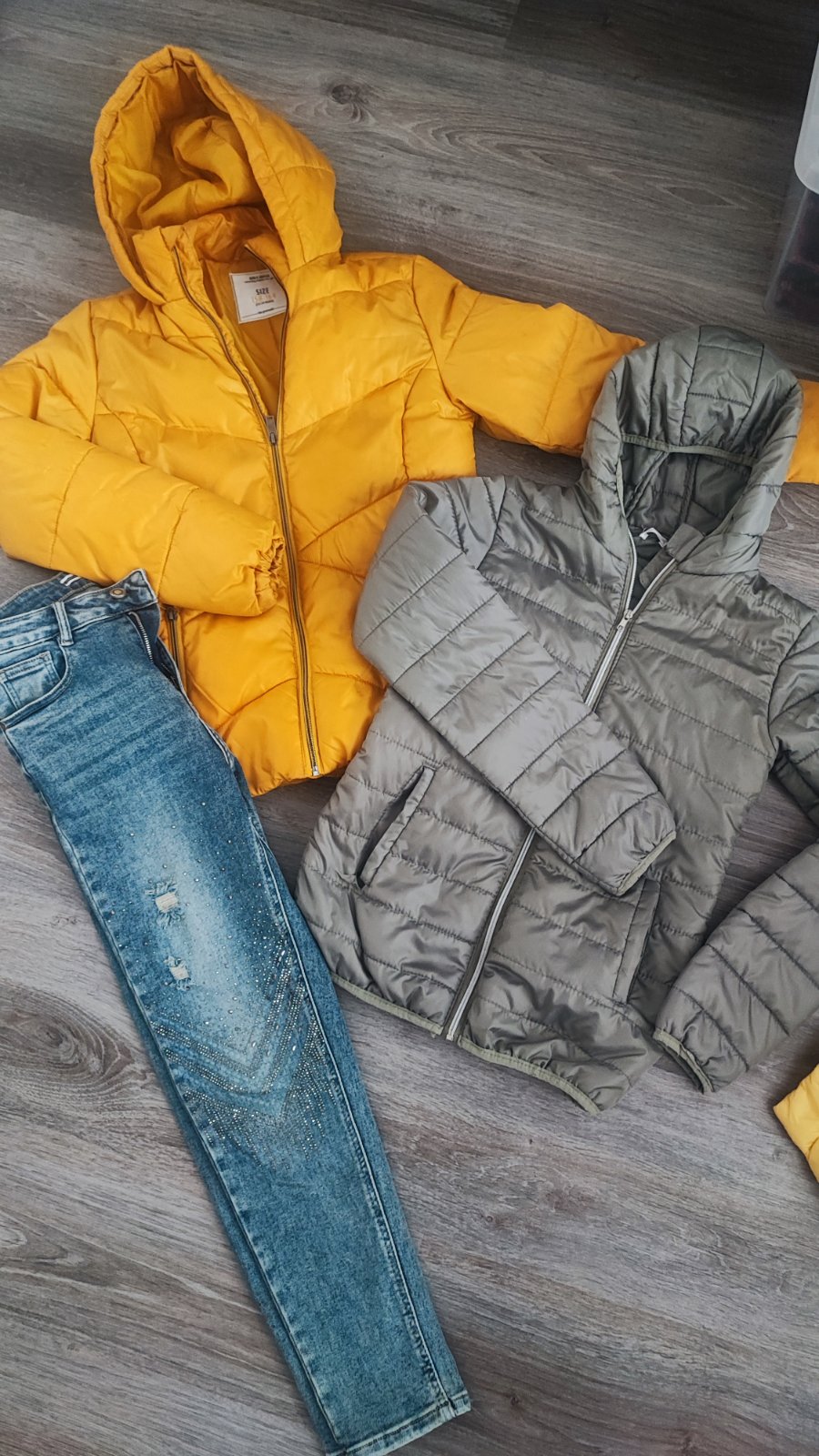 Bundy bolo nosené, ale ešte poslúžia ,na zelenej je ale potrebné trošku prichytiť vrecko,cena spolu za dve bundy