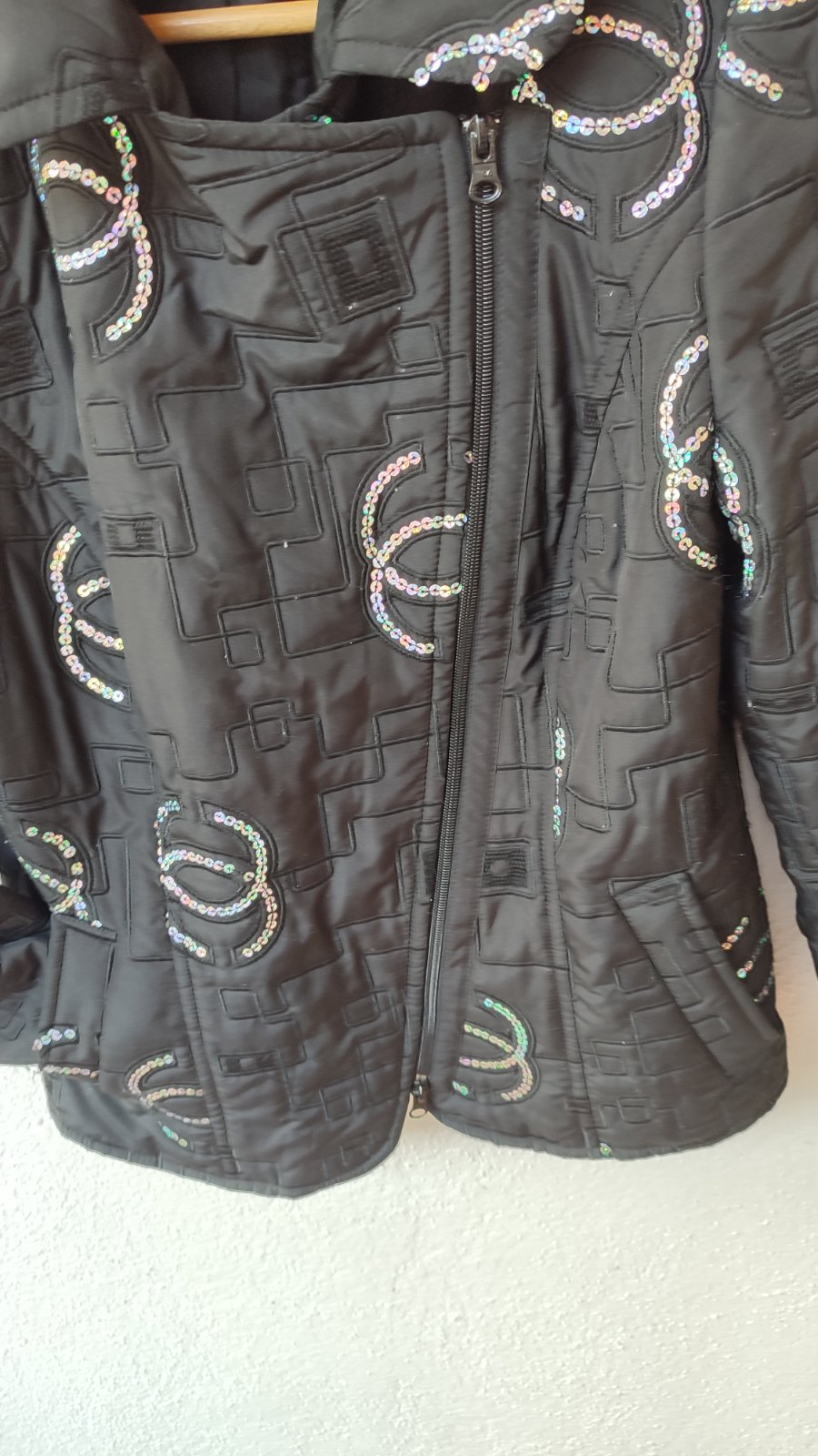 zdobená flitrami, obojstranný zips,vrecka.